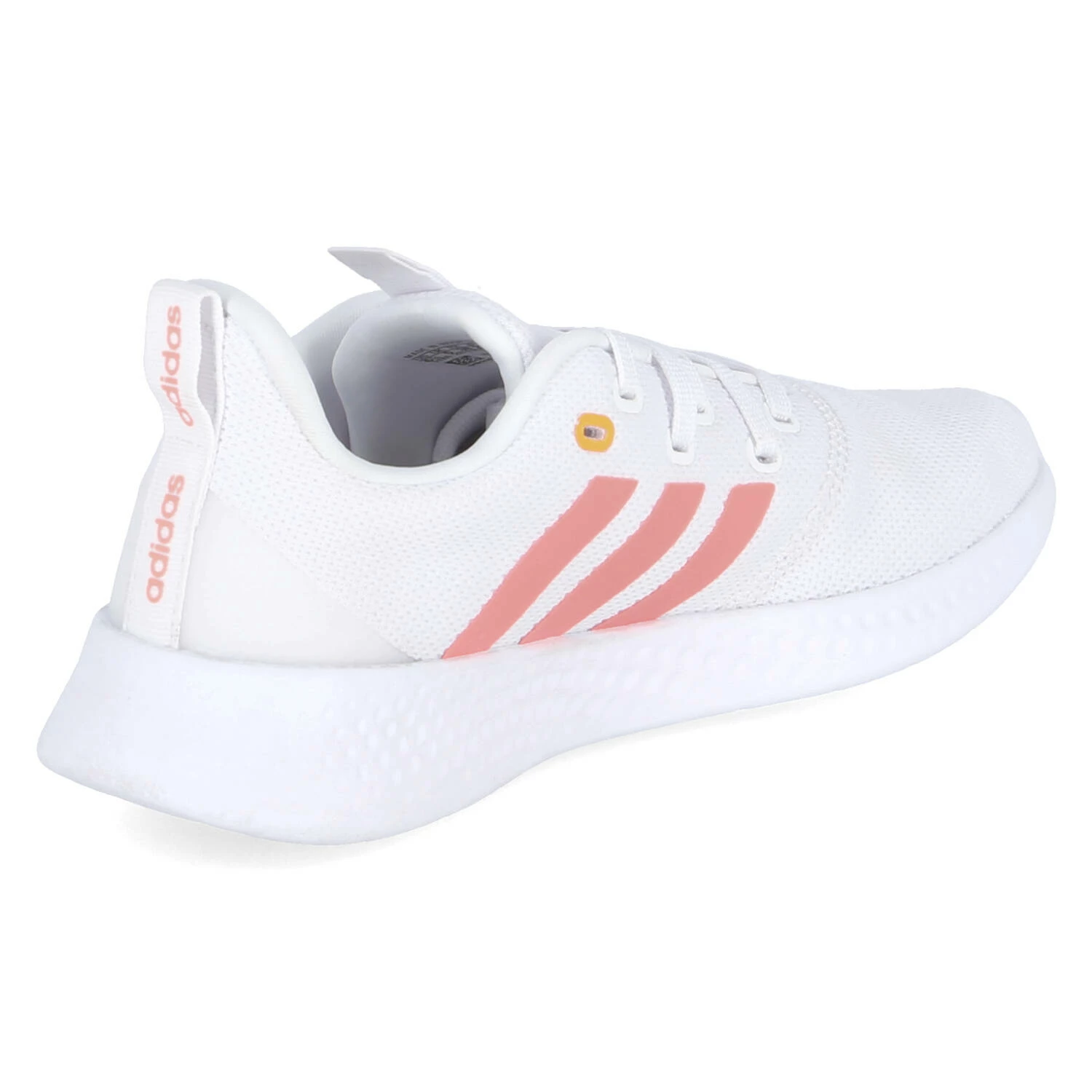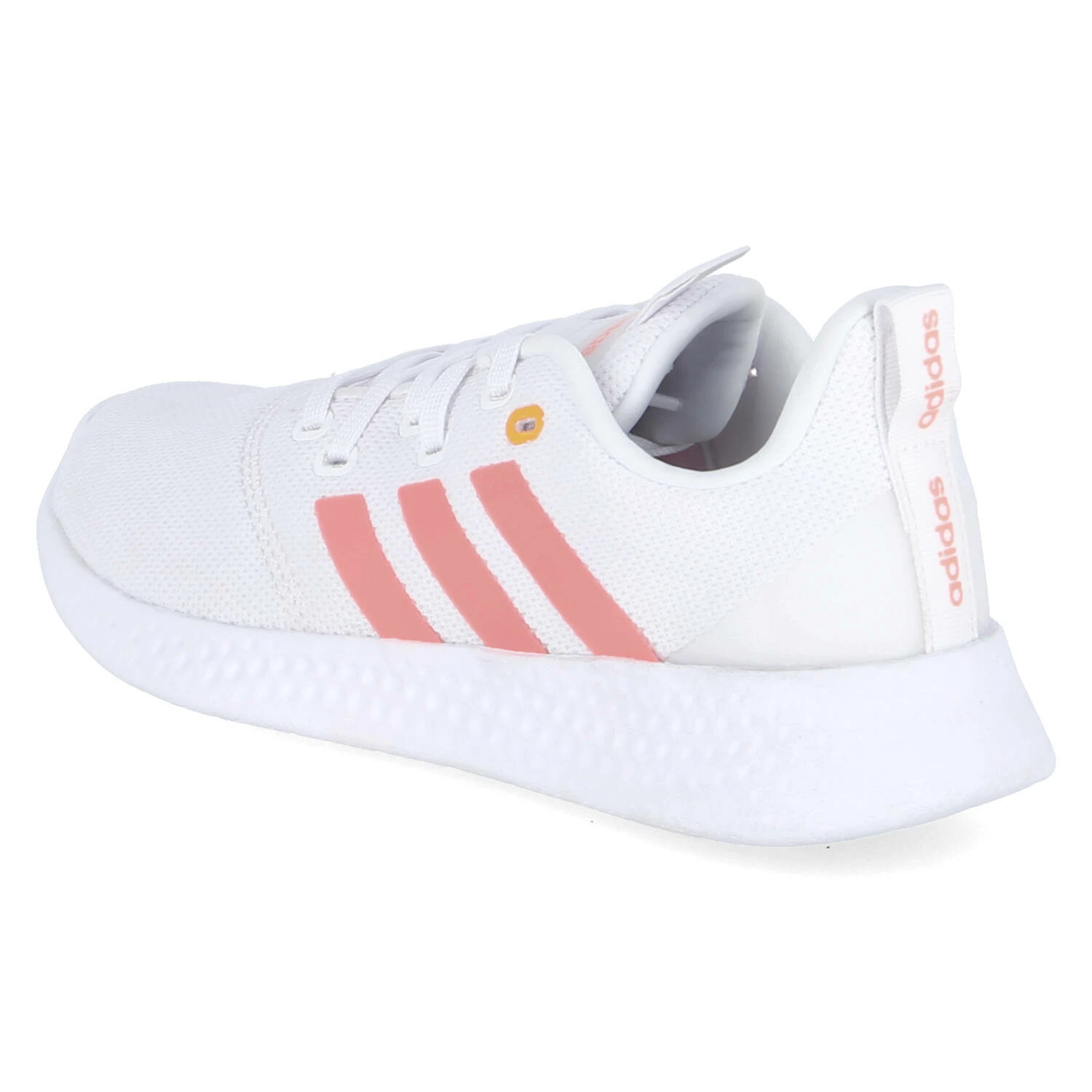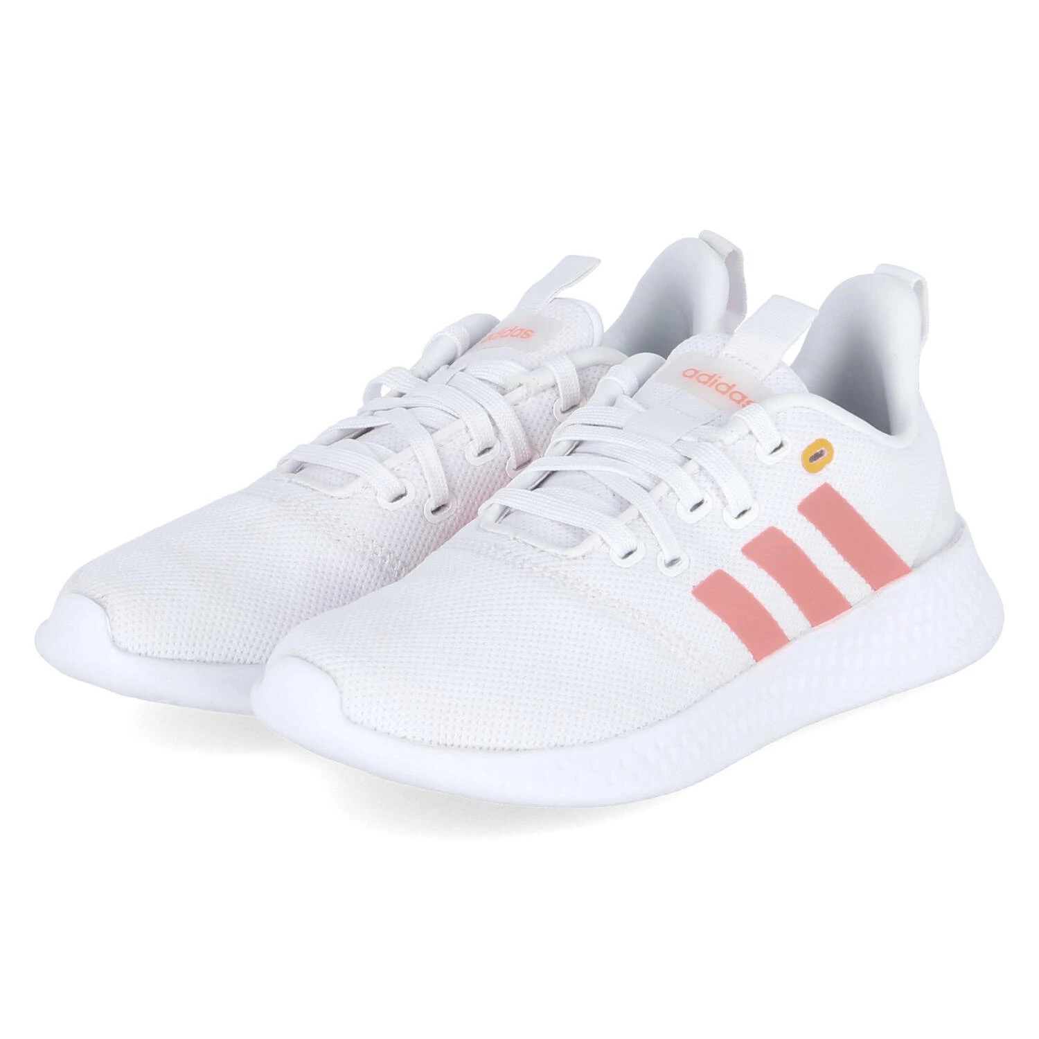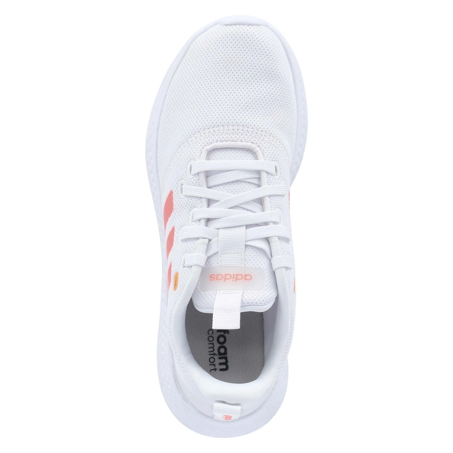 Adidas Damen Low Sneaker/ Sportschuhe/ Laufschuhe PUREMOTION Weiß Textil-Synthetik-Mix – typische Zierstreifen in Pink – typische Markendetails – zwei Anziehlaschen – Schnürung – verstärkter Zehen- und Fersenbereich – gepolsterter Einstieg – leichtes Textilfutter – gepolsterte Cloudfoam-Decksohle – weiße, flexible, rutschhemmende Laufsohle