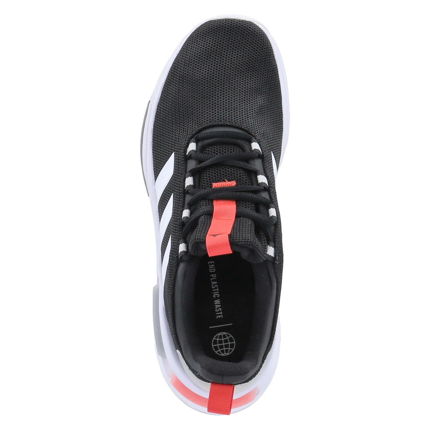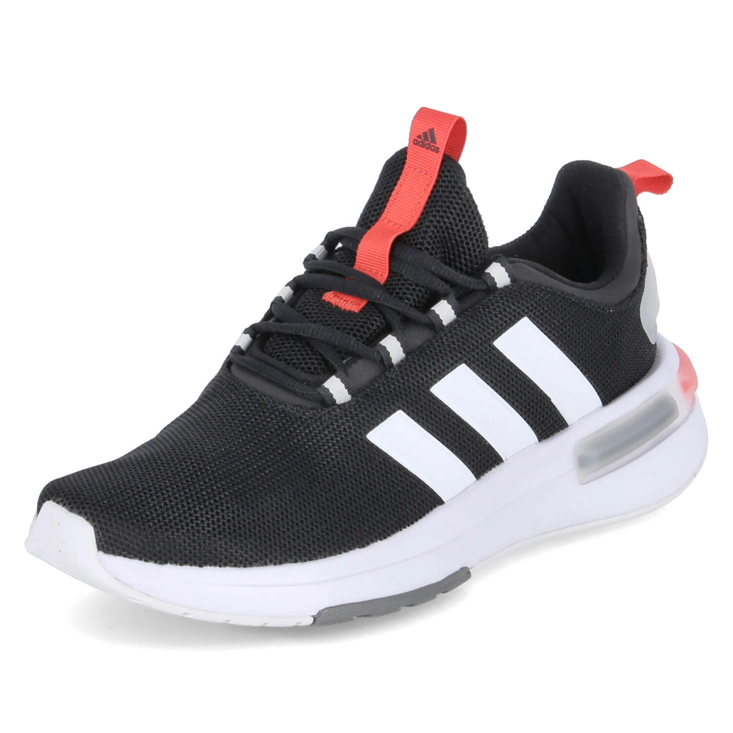Adidas Herren Laufschuhe/ Low Sneaker/ Sportschuhe RACER TR23 Schwarz Textil-Synthetik-Mix – Markendetails – weiße und rote Akzente – verstärkter Fersenbereich – gepolstertes Fußbett – zwei Anziehlaschen – gepolsterter Einstieg – stabile, rutschhemmende Laufsohle mit leichtem Profil – zum Teil mit recycelten Materialien gefertigt
