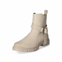 Bagatt Damen Chelsea Boots/ Stiefeletten Beige – natürlicher Look – seitilicher Elastikeinsatz am Schaft – Reißverschluss – modische Ziernähte – Markenlabel – Anziehlasche – leicht gepolsterte Decksohle – flexible und rutschhemmende Laufsohle – Blockabsatz in Holzoptik ca. 8 cm