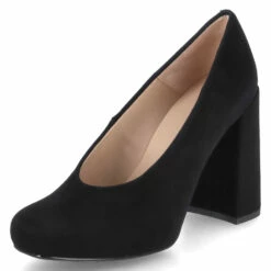 Bagatt Damen Pumps GALLARATE Schwarz Synthetik – elegantes Design – Riemen mit verstellbarer Schnalle und Elastikeinsatz – verstärkte Ferse – gepolsterte Lederdecksohle – rutschhemmende Laufsohle mit leichtem Profil – robuster Blockabsatz