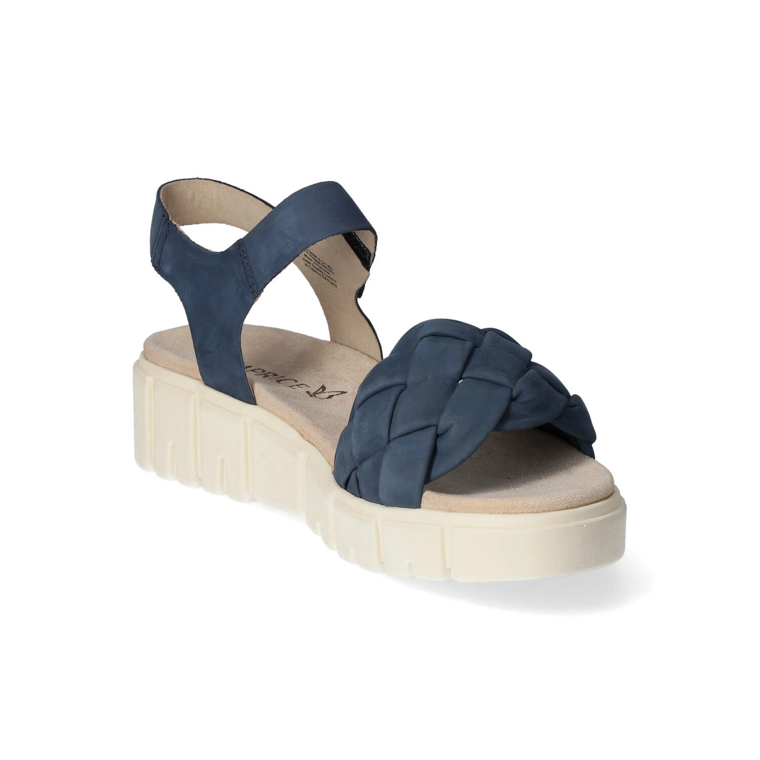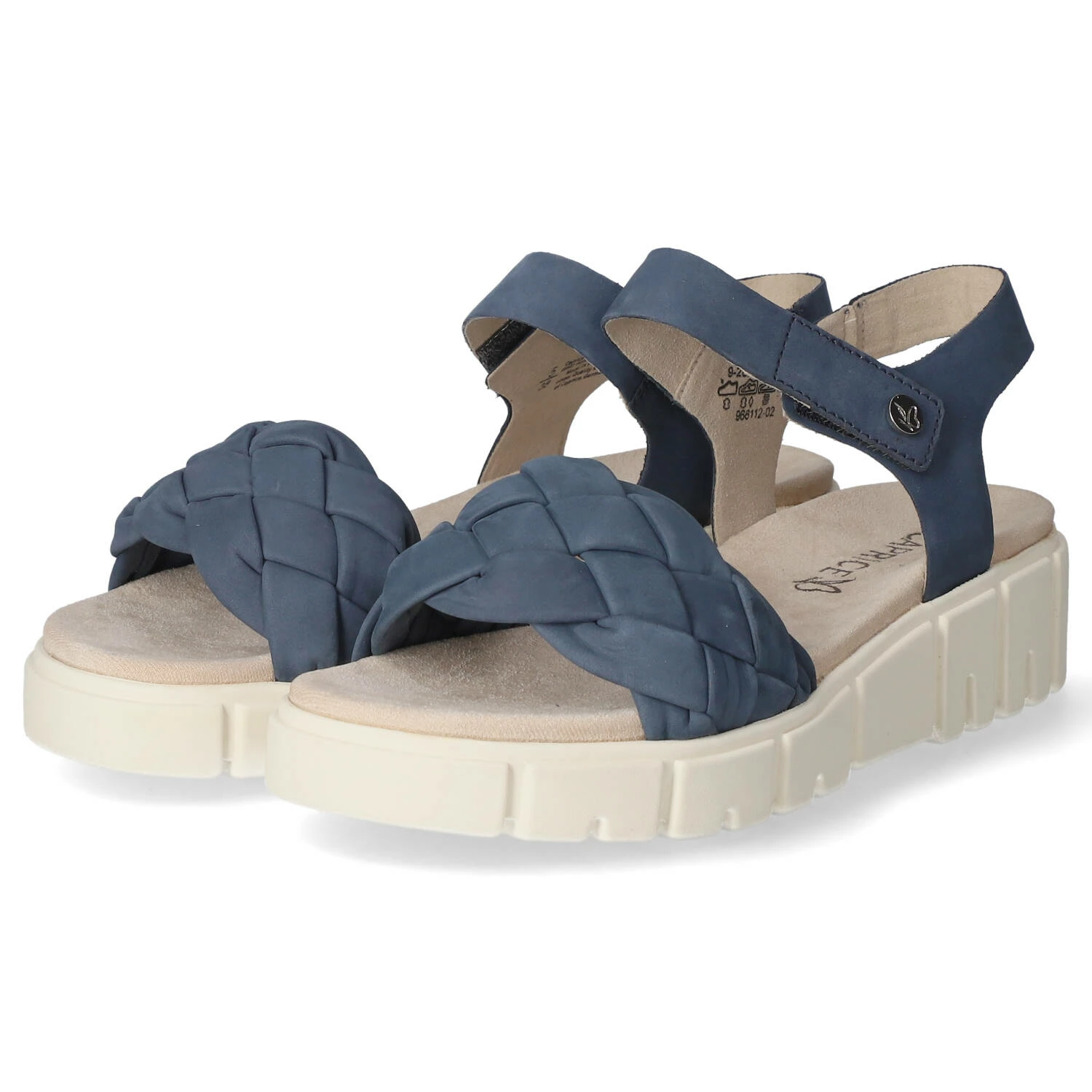Caprice Damen Sandaletten/ Keilsandaletten Blau Rauleder – modisch geflochtene Riemen – Knöchelriemen mit Klettverschluss – gepolsterte Decksohle – flexible, rutschhemmende Profilsohle – stabiler Keilabsatz