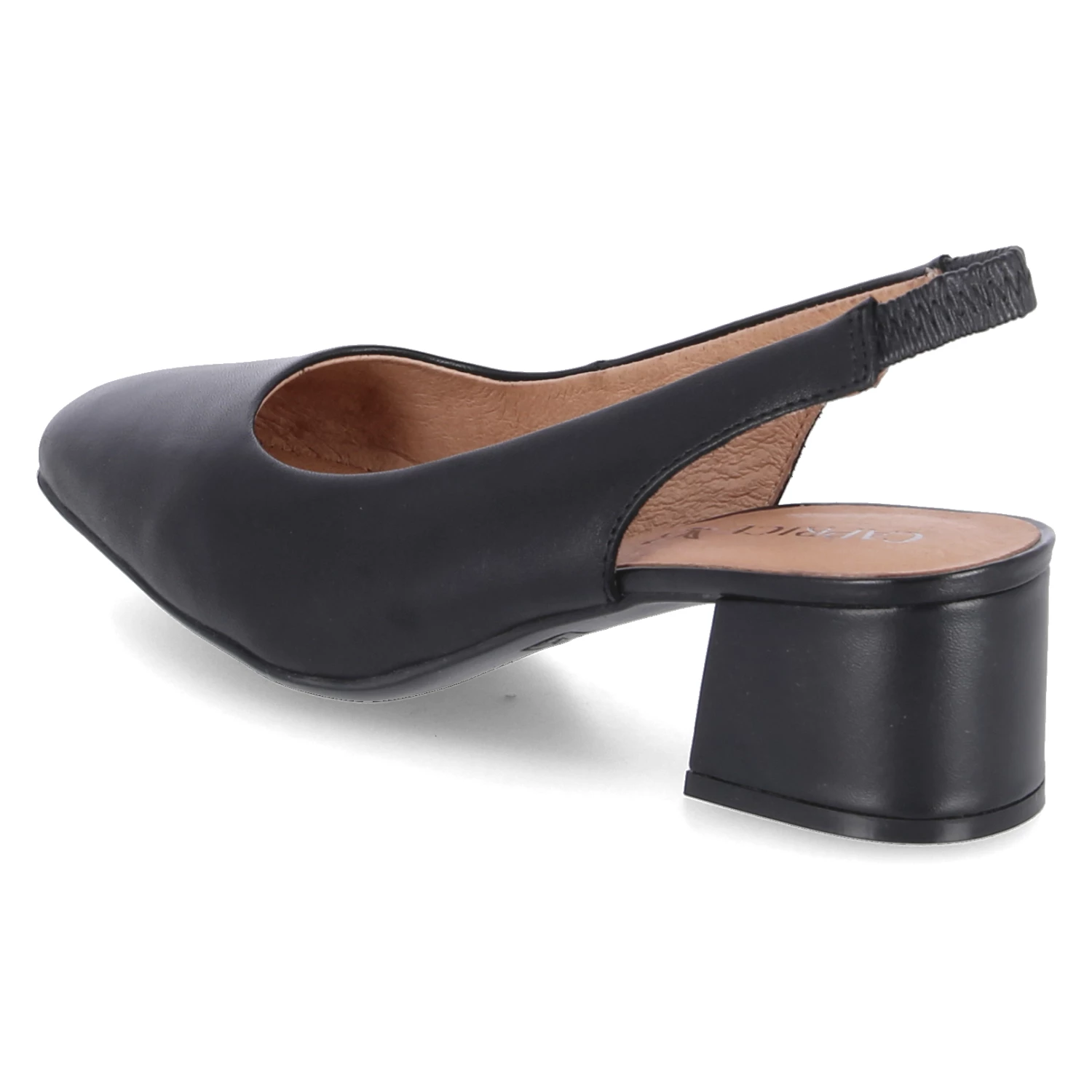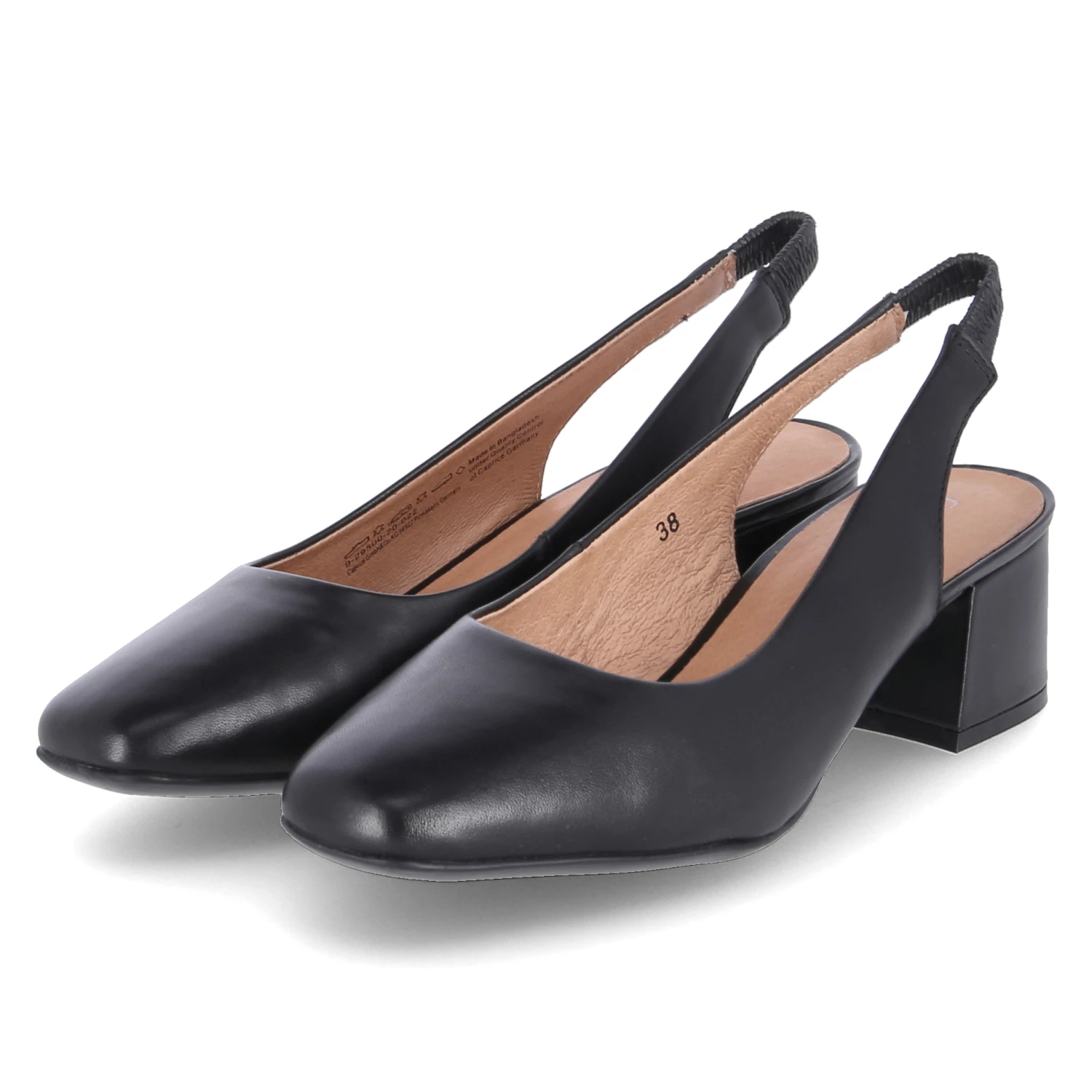 Caprice Damen Sling- Pumps Schwarz Glattleder – klassisches Design – Sling mit Elastikeinsatz – ca. 5 cm hoher Blockabsatz – Lederfutter und ~fußbett – flexible Laufsohle