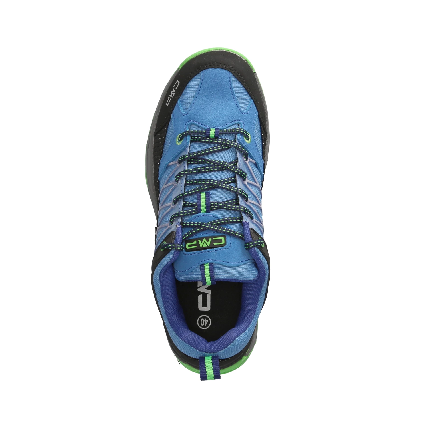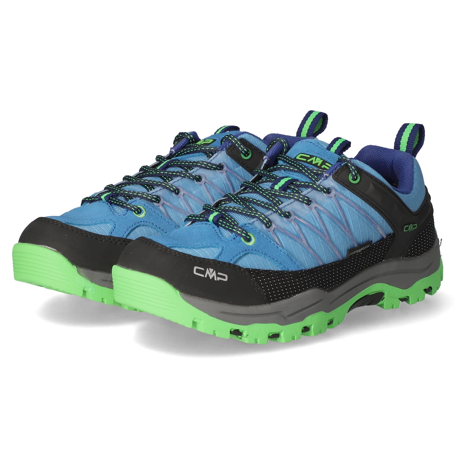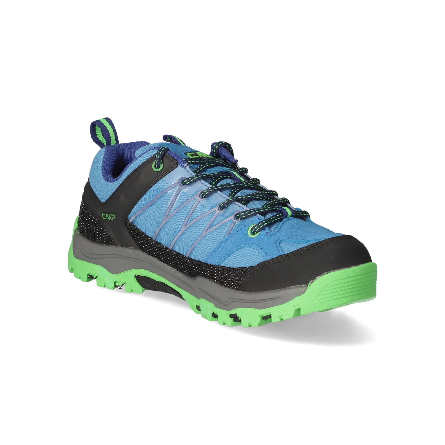CMP Kinder Outdoorschuhe/ Wanderschuhe Blau Leder-Textil-Mix – wasserfest – sportliches Design – grüne Highlights – Schnürsenkel – verstärkter Zehen- und Fersenbereich – Anziehlasche – gepolsterter Einstieg – leichtes Textilfutter – herausnehmbare Decksohle – flexible, rutschhemmende Profilsohle