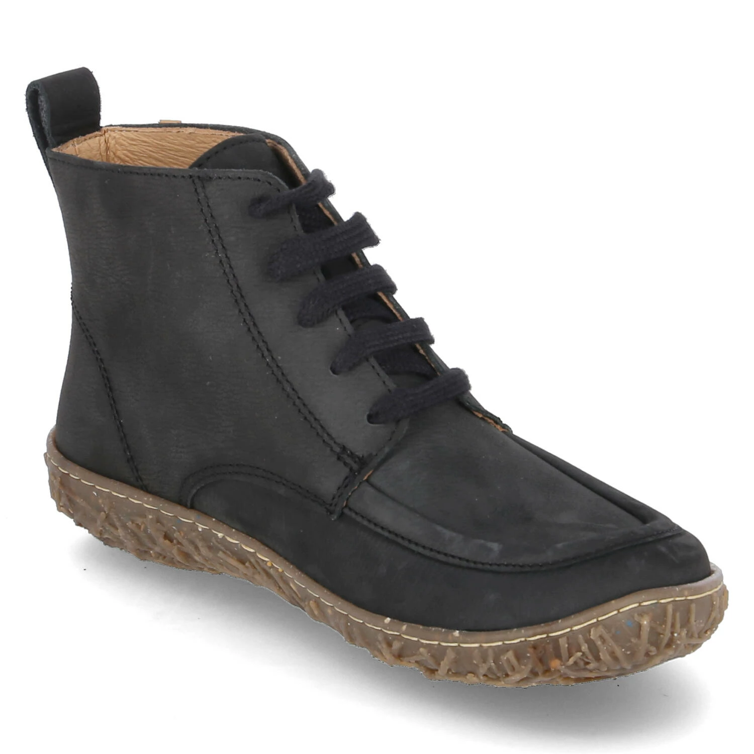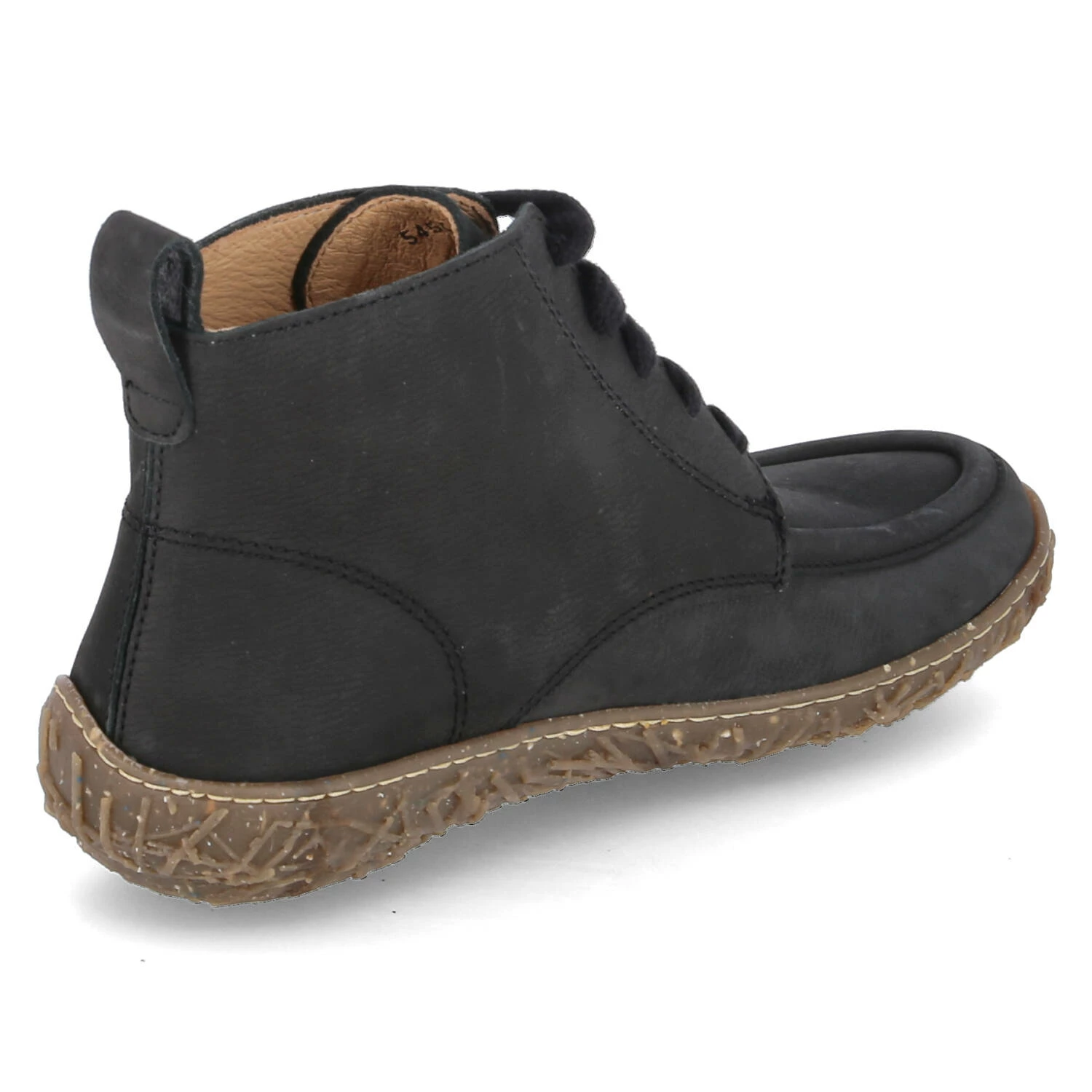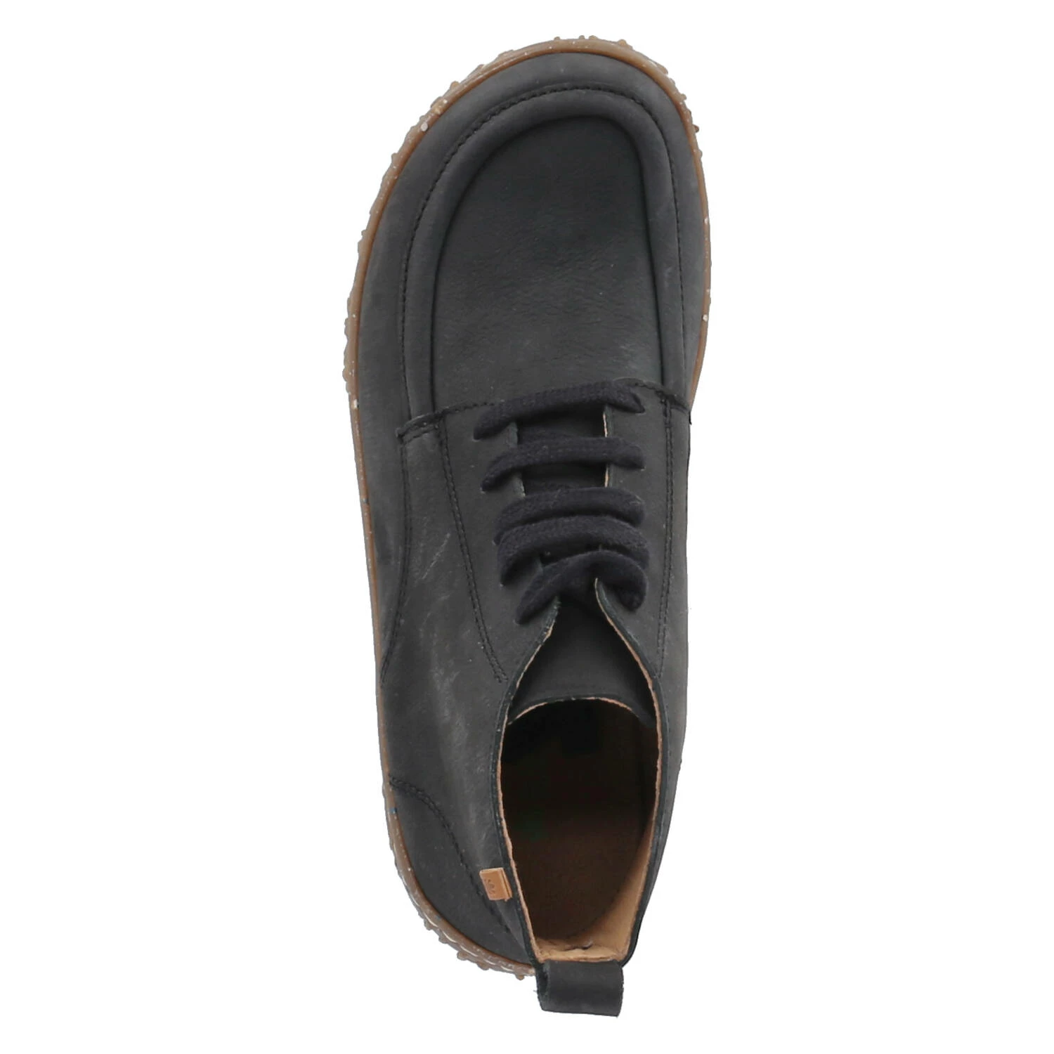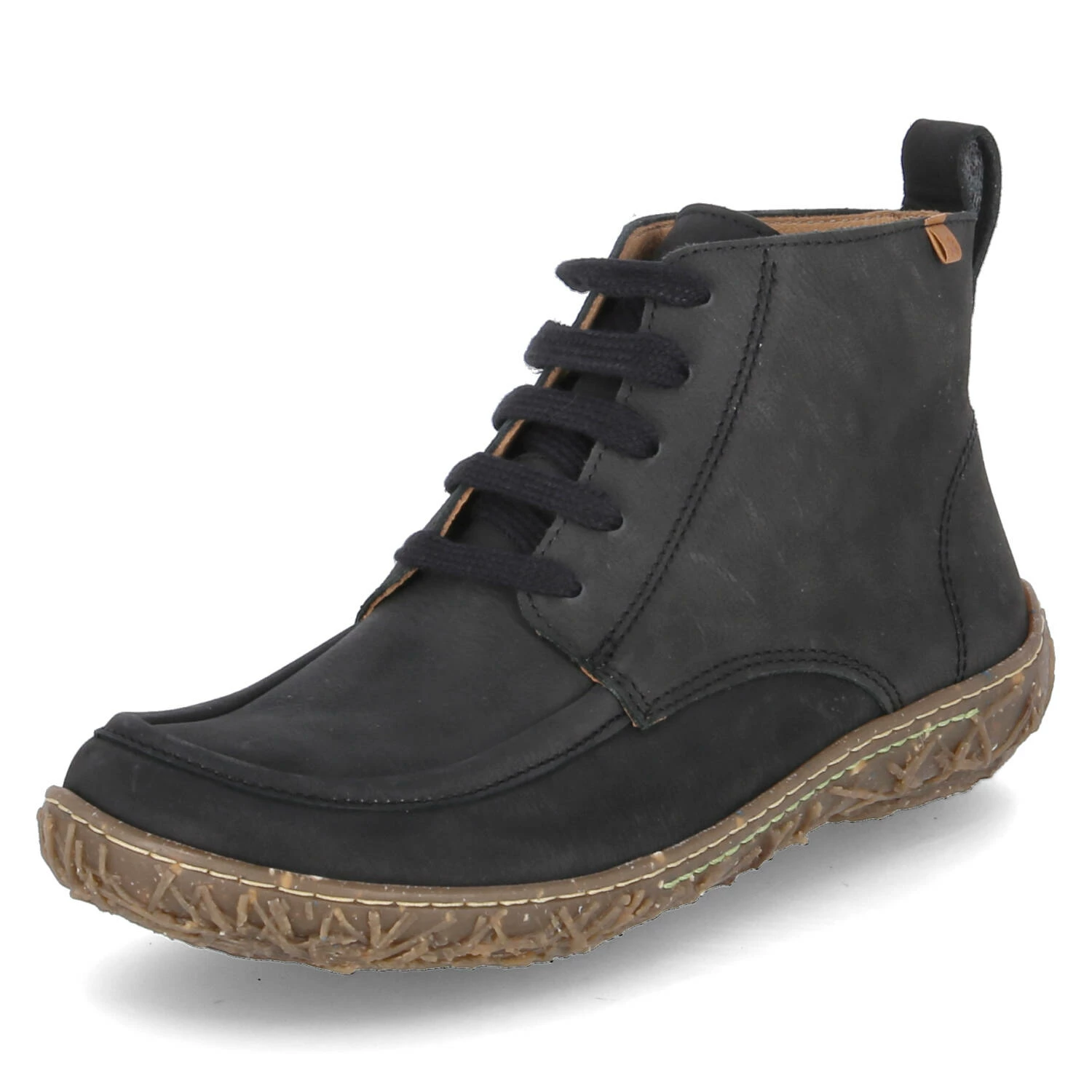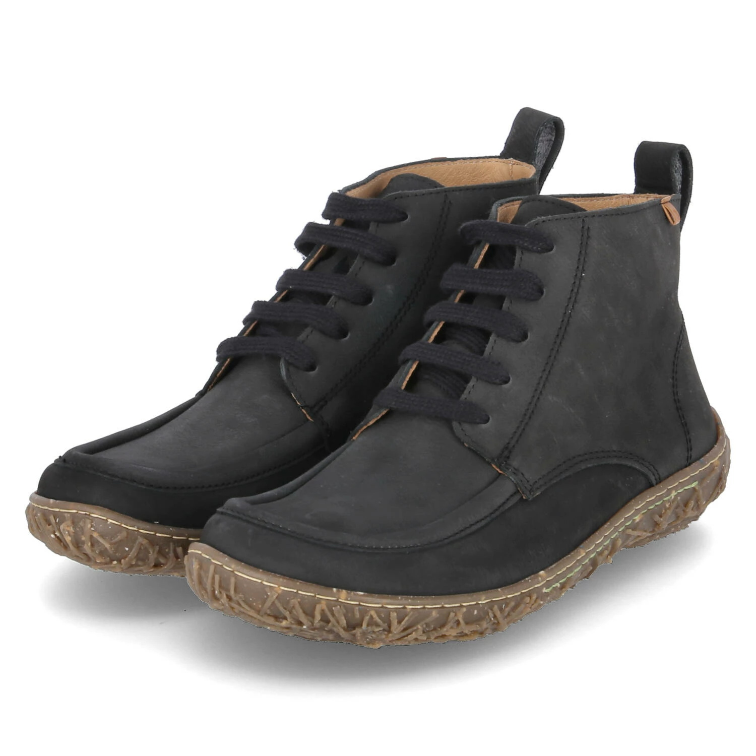 El Naturalista Damen Schnürstiefeletten NIDO Schwarz Rauleder – Schaft mit Raffung und Reißverschluss – verstärkte Ferse und Zehen – flexible, rutschhemmende Laufsohle – leicht gepolsterte Decksohle – Anziehlasche