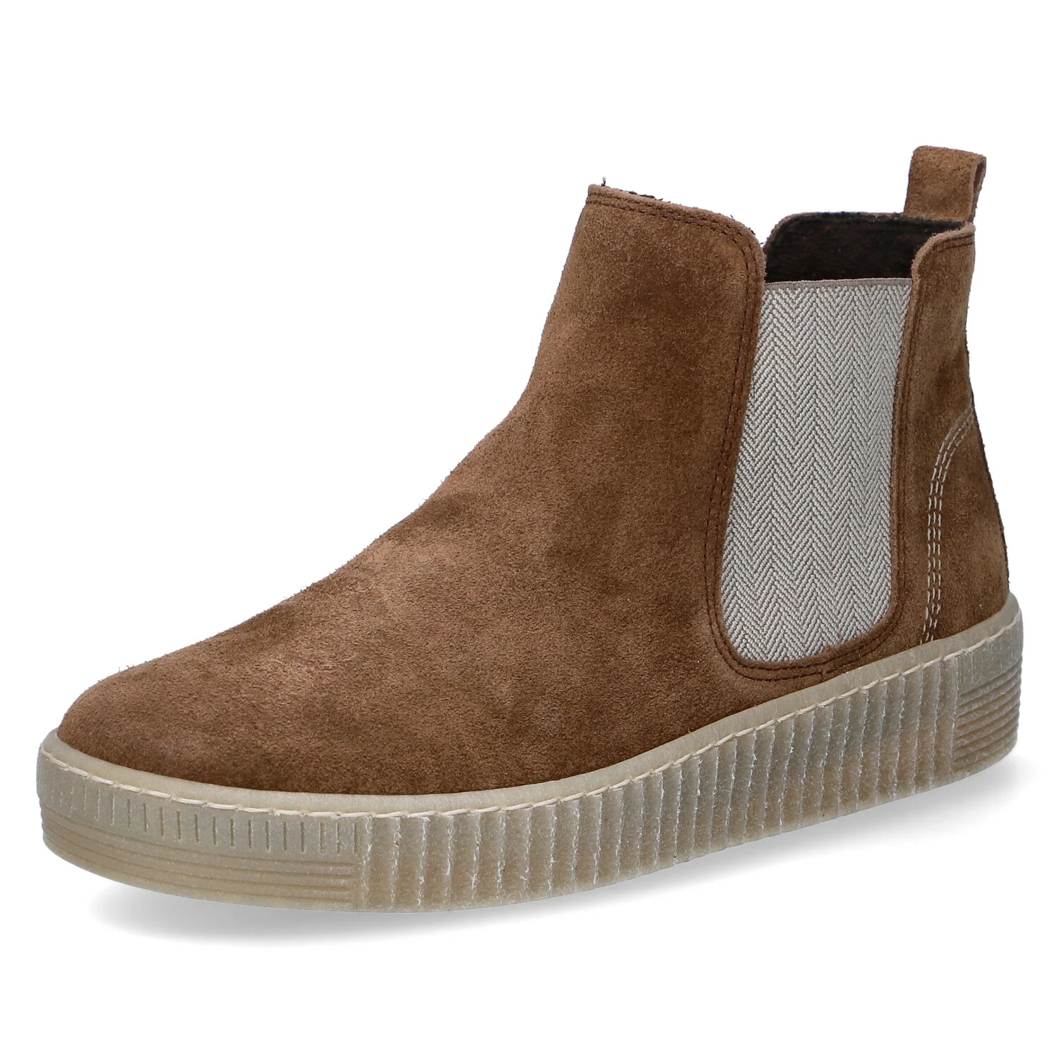 Gabor Damen Chelsea Boots/ Stiefeletten Braun Rauleder – zwei Elastikeinsätze – angenehmes Textilfutter – Anziehlasche – gepolsterte Decksohle – verstärkte Ferse – flexible, rutschhemmende Laufsohle mit Profil
