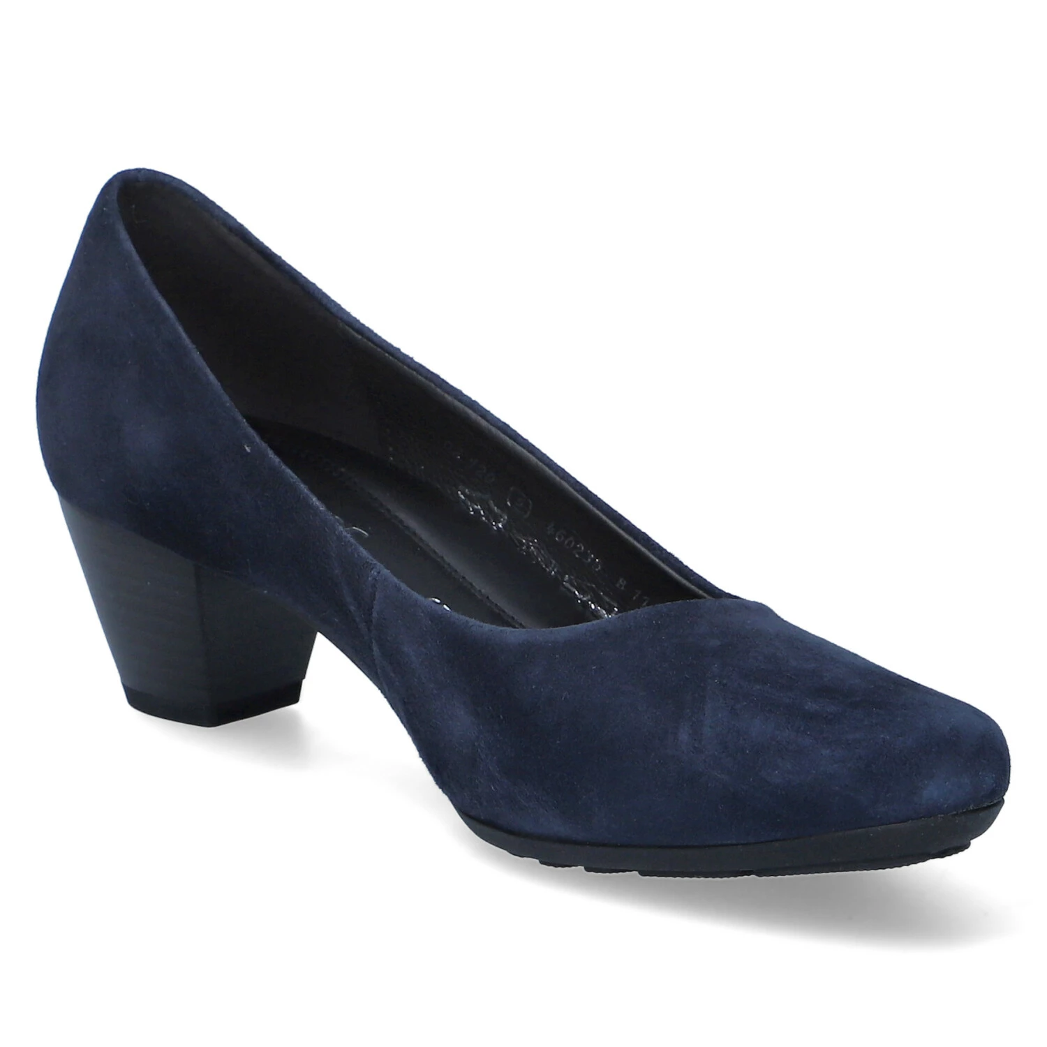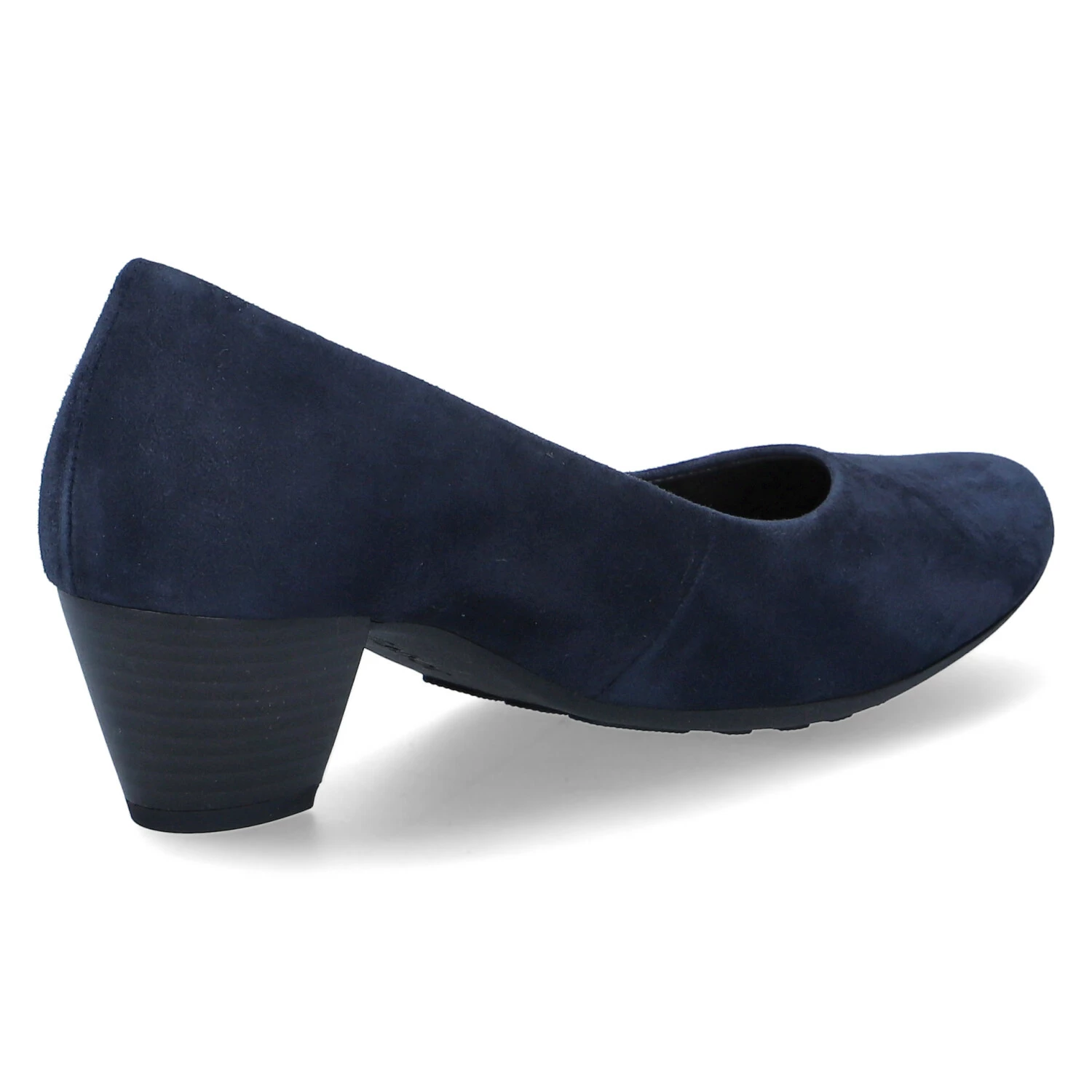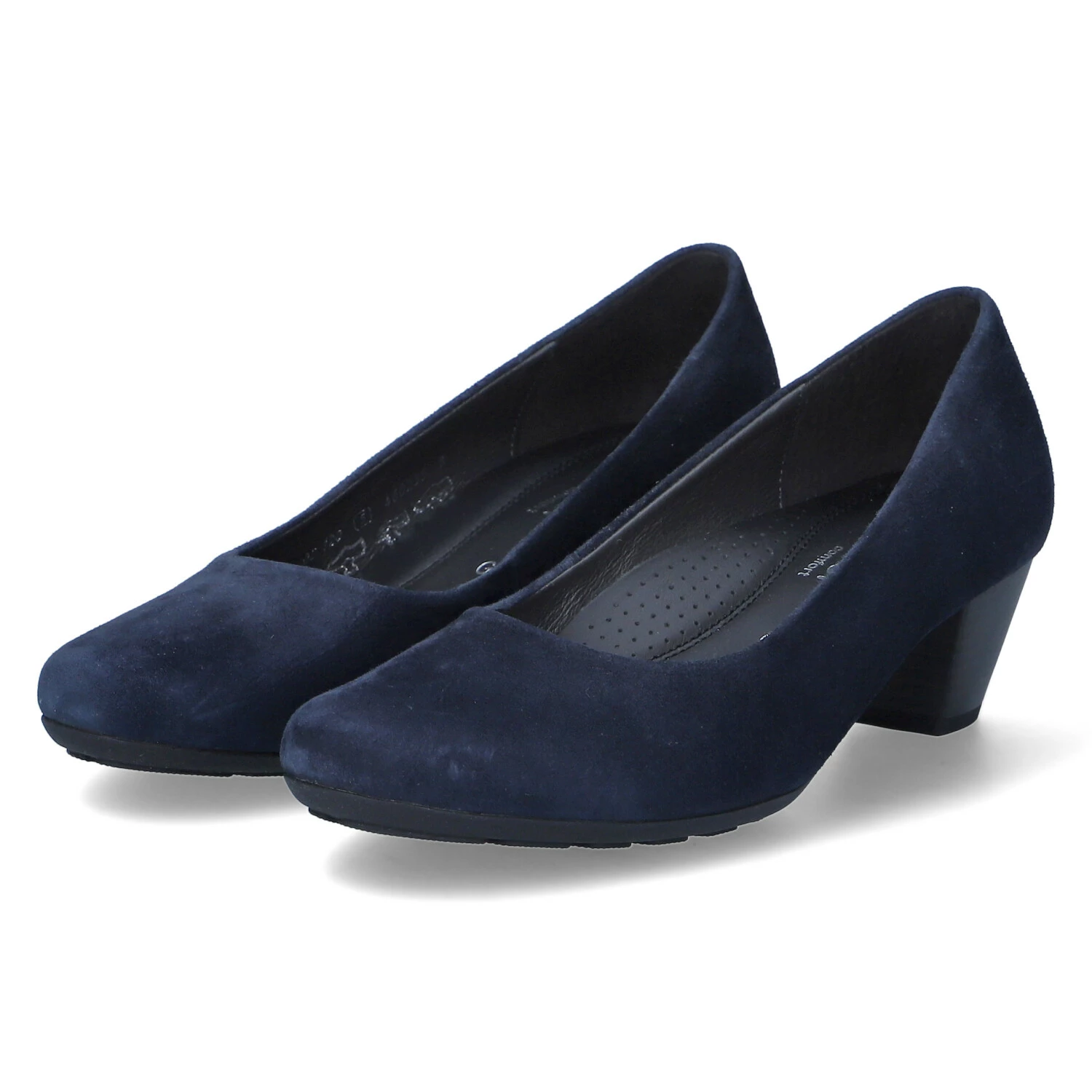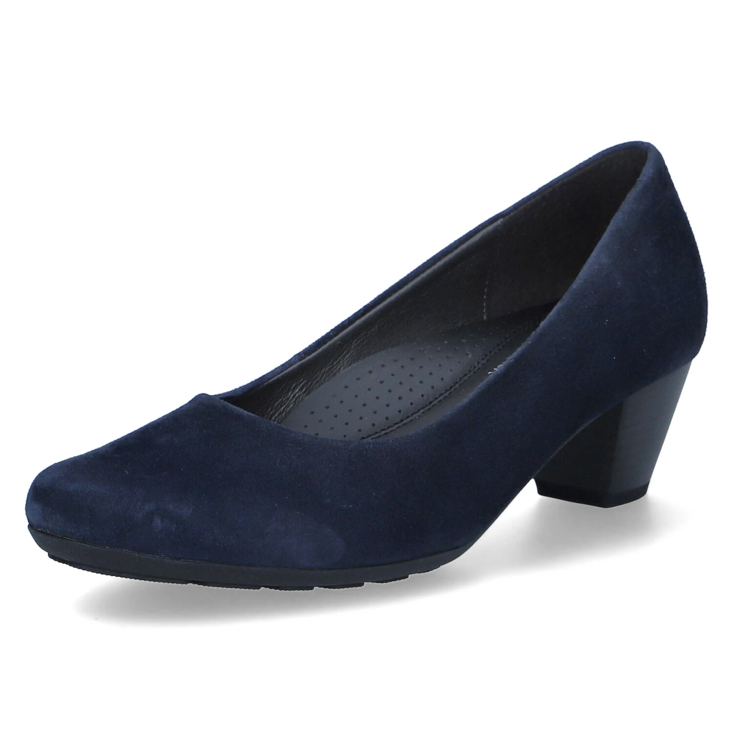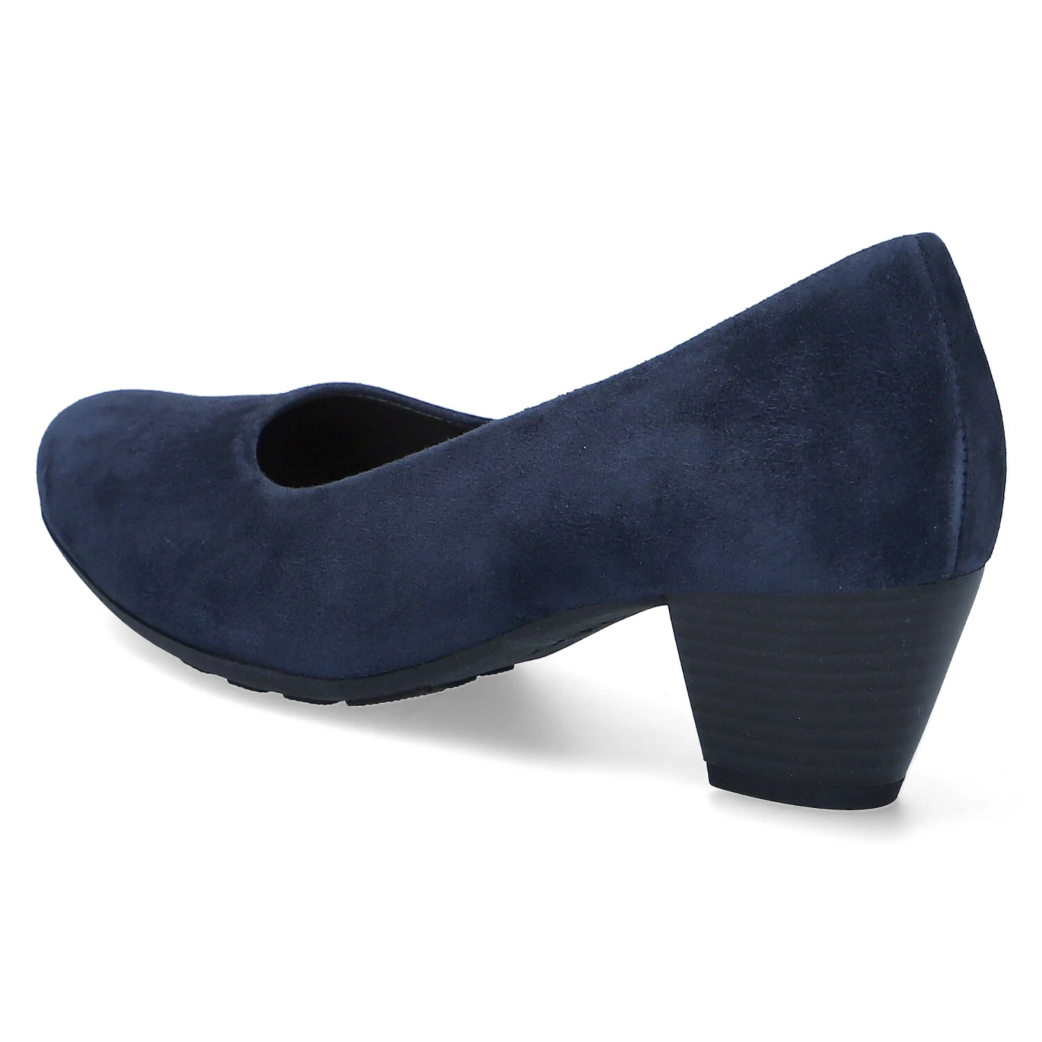 Gabor Damen Pumps Blau Rauleder – elegantes Design – verstärkte Ferse – gepolsterte Lederdecksohle – flexible, rutschhemmende „air cube“-Laufsohle mit leichtem Profil – stabiler Trichterabsatz in Holzoptik