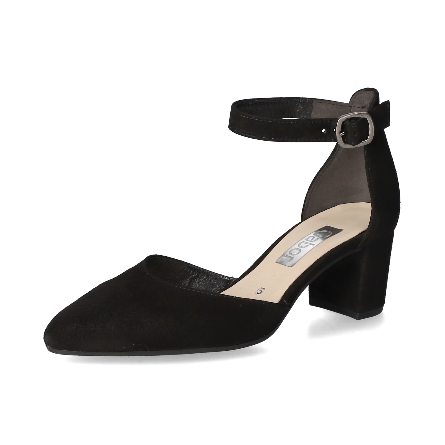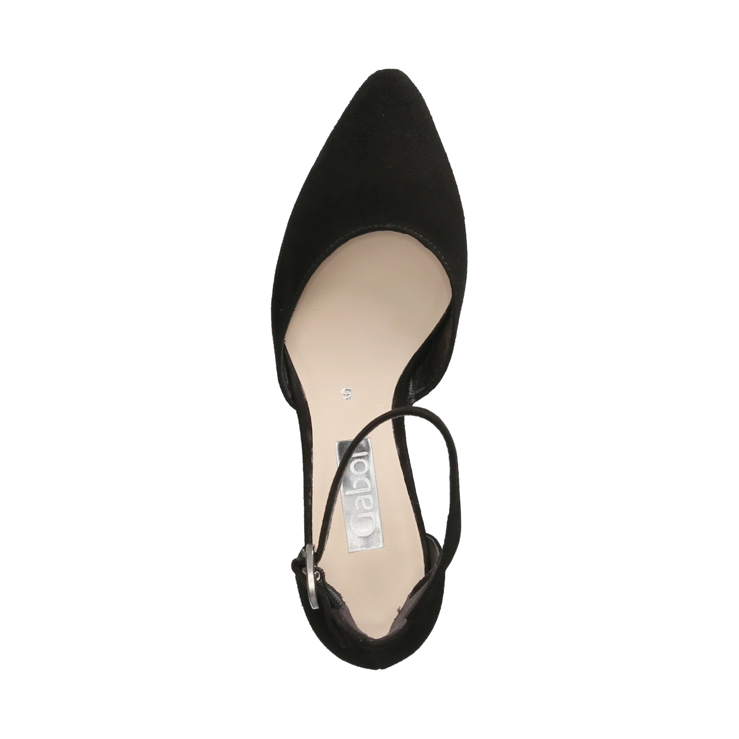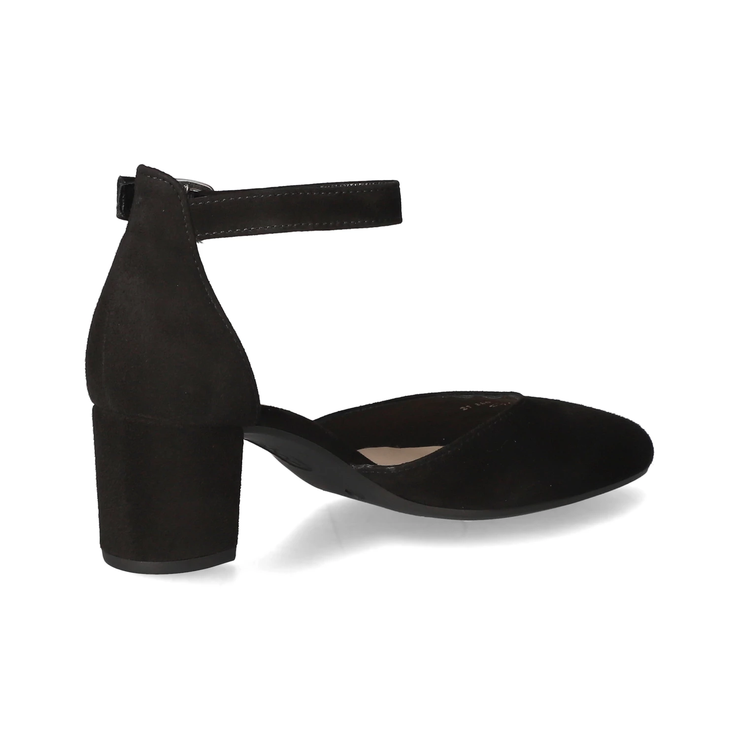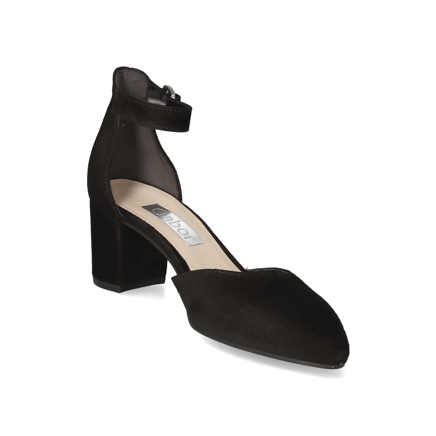 Gabor Damen Pumps / Spangenpumps Schwarz Rauleder – elegantes Design – Knöchelriemen mit Dornverschluss und Elastikeinsatz – verstärkte Ferse – angenehmes Lederfutter – leicht gepolsterte Lederdecksohle – flexible, rutschhemmende Laufsohle – stabiler Blockabsatz