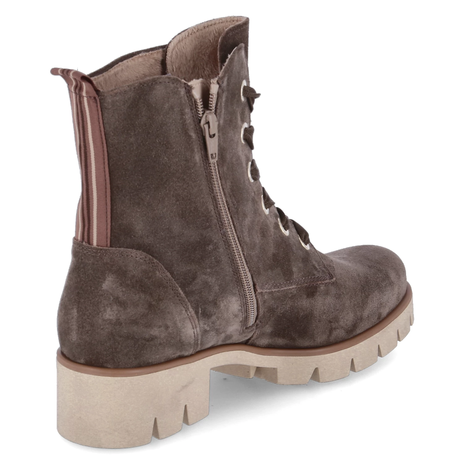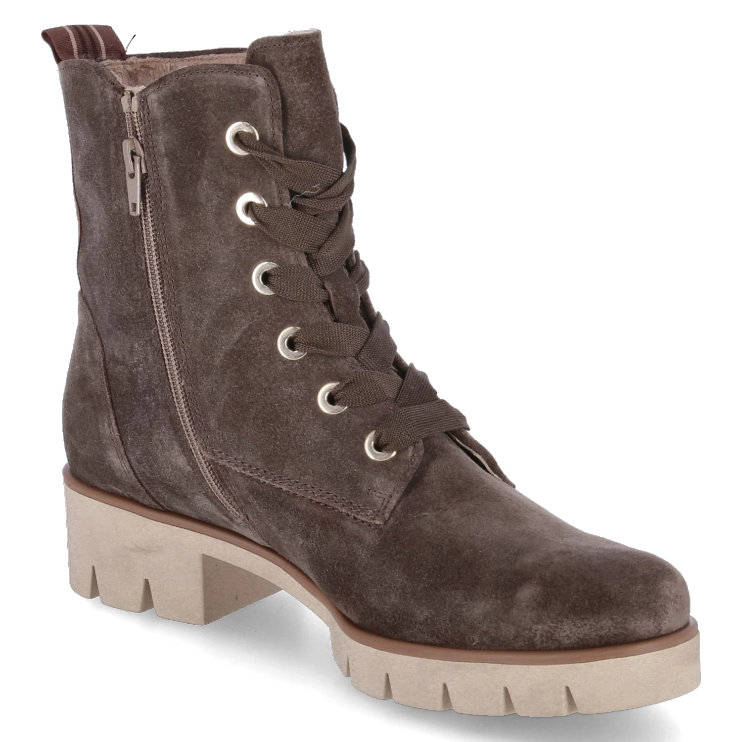 Gabor Damen Schnürboots/ Stiefeletten Grau Rauleder – Schnürung und Reißverschluss – Anziehlasche – verstärkte Ferse – starke, rutschhemmende Laufsohle mit Profil – gepolstertes Wechselfußbett – leichtes Fleecefutter