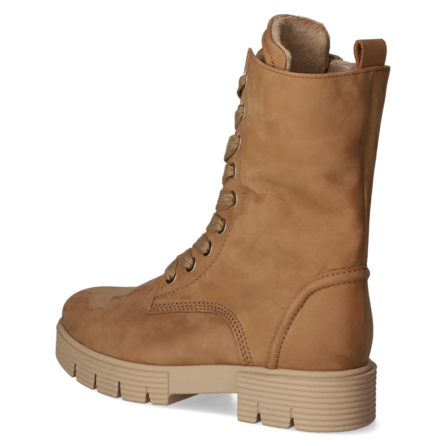 Gabor Damen Schnürstiefeletten/ Stiefeletten/ Winterstiefeletten Braun Rauleder – Schnürung und Reißverschluss – Ziernähte – verstärkter Fersenbereich – Anziehlasche – Warmfutter – gepolstertes Wechselfußbett – flexible, rutschhemmende Laufsohle mit Profil – ca. 4 cm Blockabsatz
