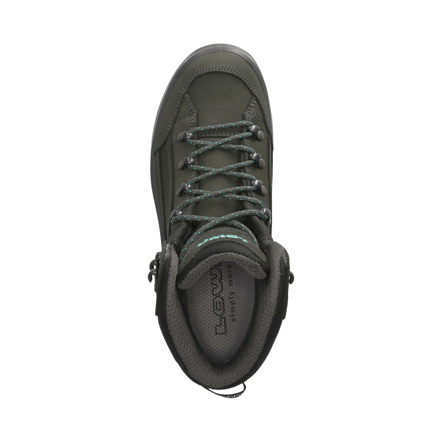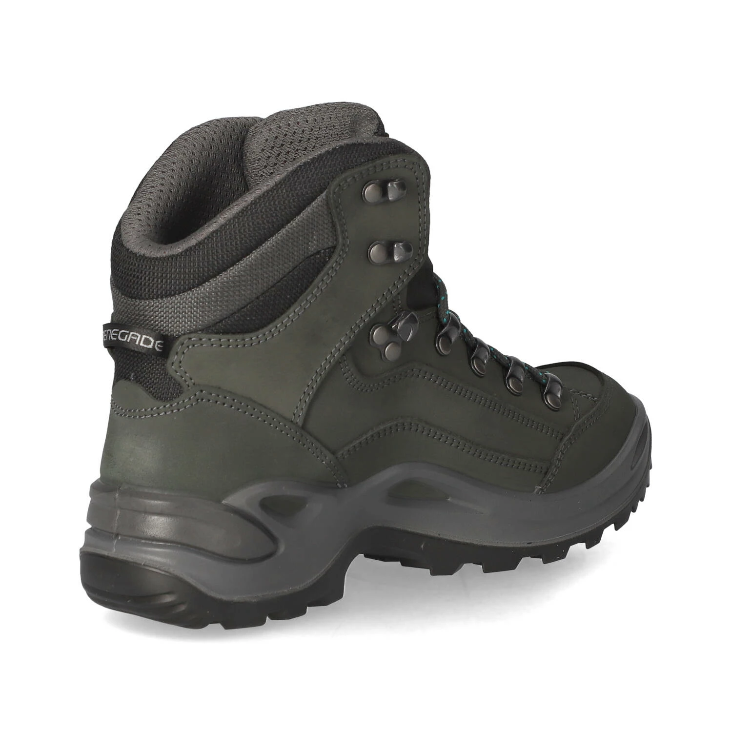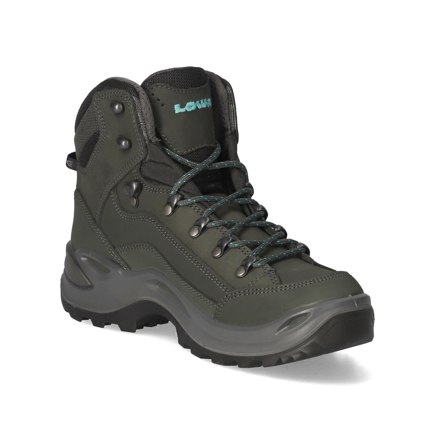 Lowa Damen Outdoorschuhe/ Wanderschuhe/ Trekkingschuhe RENEGADE Grün/Grau Rauleder – wasserfest, atmungsaktiv (Gore-Tex) – sportliches Design – türkise Highlights – Schnürung – verstärkter Fußrahmen – Anziehlasche – gepolsterter Einstieg – leichtes Textilfutter – gepolstertes Wechselfußbett – flexible, rutschhemmende Profilsohle