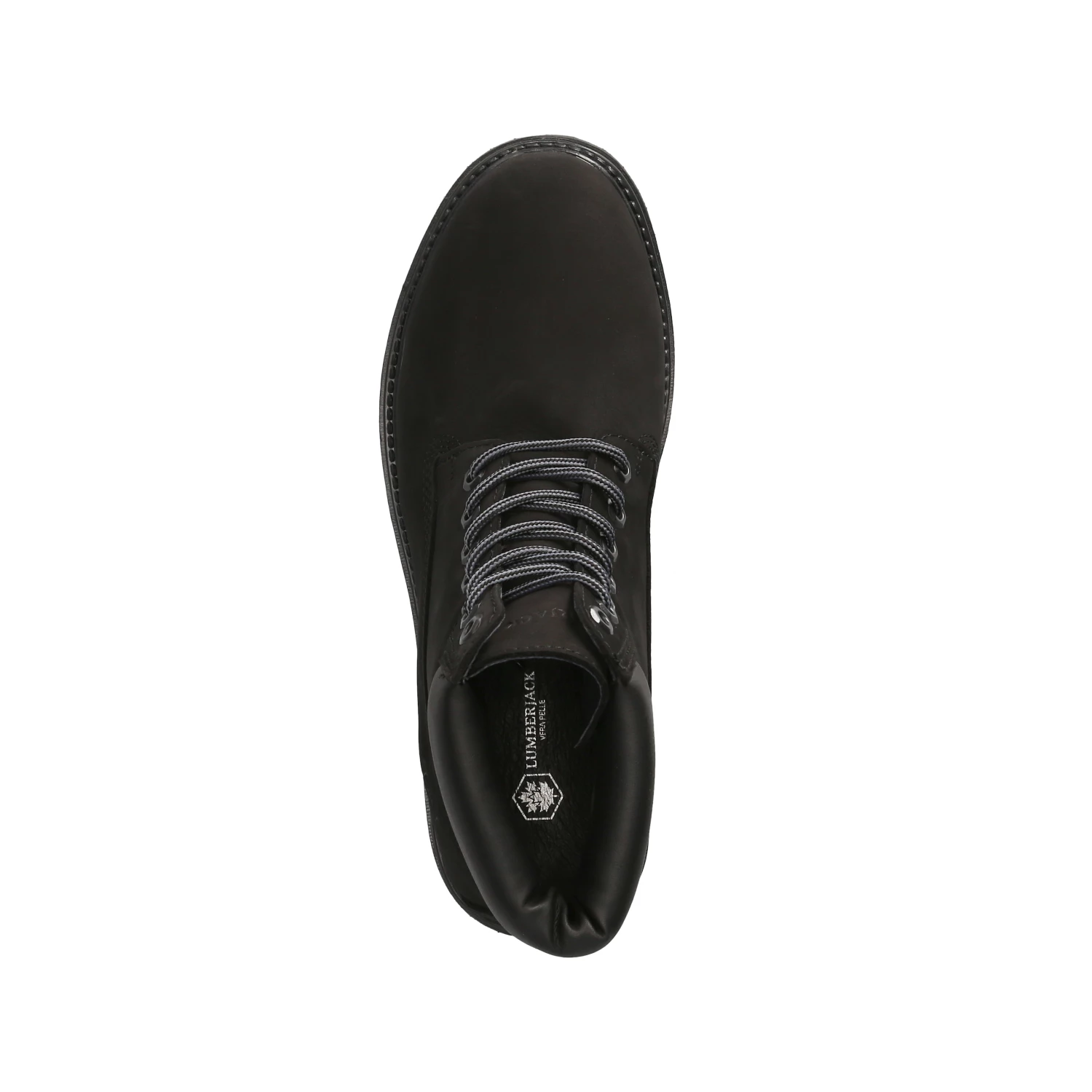 Lumberjack Herren Schnürstiefeletten/ Stiefeletten RIVER Schwarz Rauleder-Synthetik-Mix – modische Ziernähte – gelabelt – Schnürung – gepolsterter Einstieg – verstärkter Fersenbereich – gepolsterte Wechseldecksohle – flexible, rutschhemmende Profilsohle
