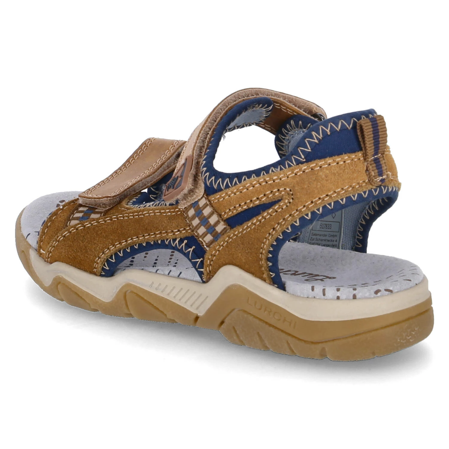 Lurchi Jungen Sandalen BJARNE Braun Leder-Textil-Synthetik-Mix – zwei Klettriemen – Ziernähte – neoprenähnliches Futter – gepolstertes Lederfußbett – seitlicher Steg – flexible, rutschhemmende Profillaufsohle