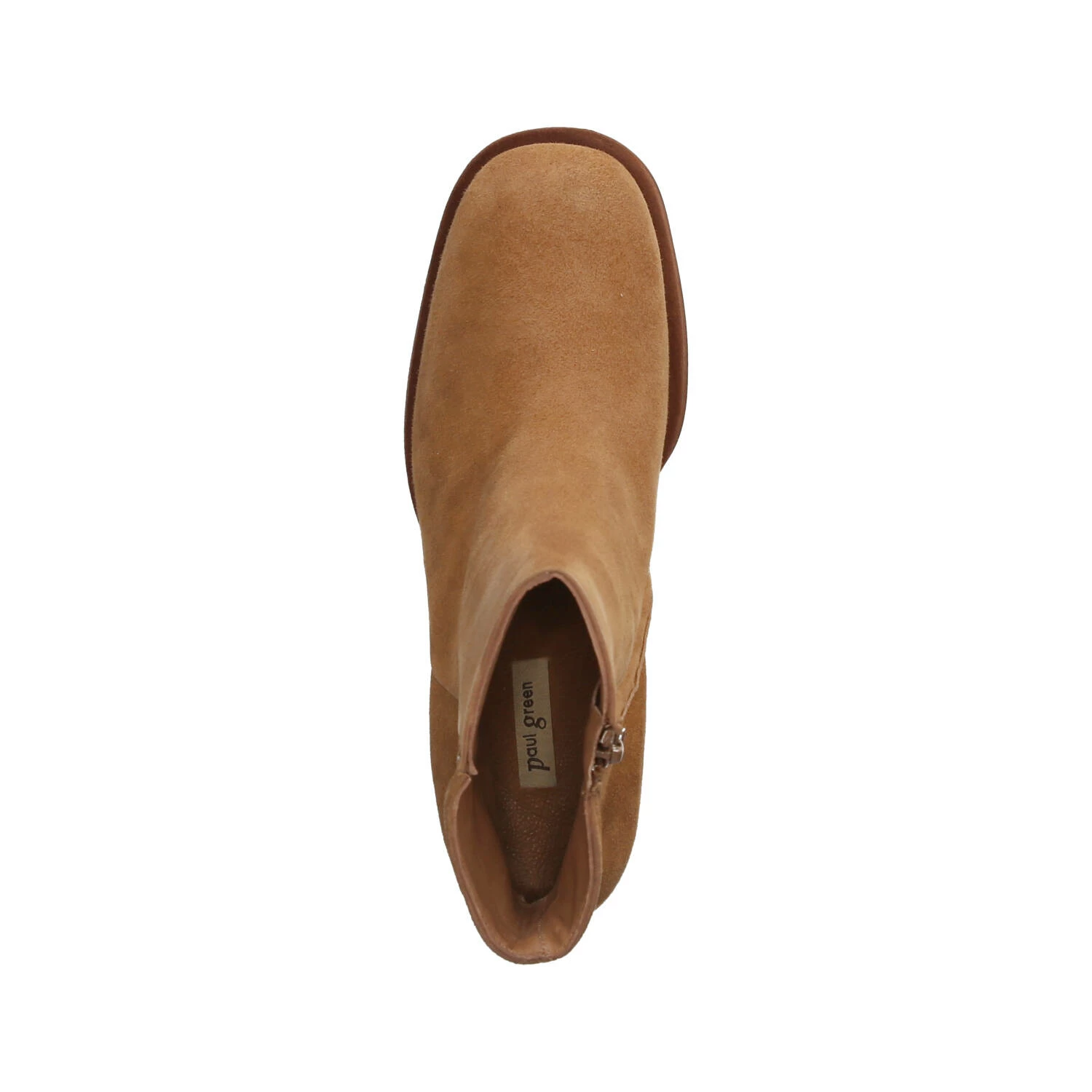 Paul Green Damen Stiefeletten Braun Rauleder – Reißverschluss – angenehmes Lederfutter – Lederdecksohle – verstärkter Fersenbereich – flexible, rutschhemmende Laufsohle mit leichtem Profil – stabiler Blockabsatz