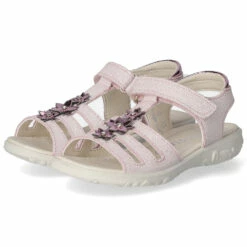 Ricosta Mädchen Sandalen CLEO Rosa Leder – glänzende Blumenmotive – Riemen mit Klettverschluss und Zierschnalle – gepolstertes Fußbett – flexible, rutschhemmende Profilsohle