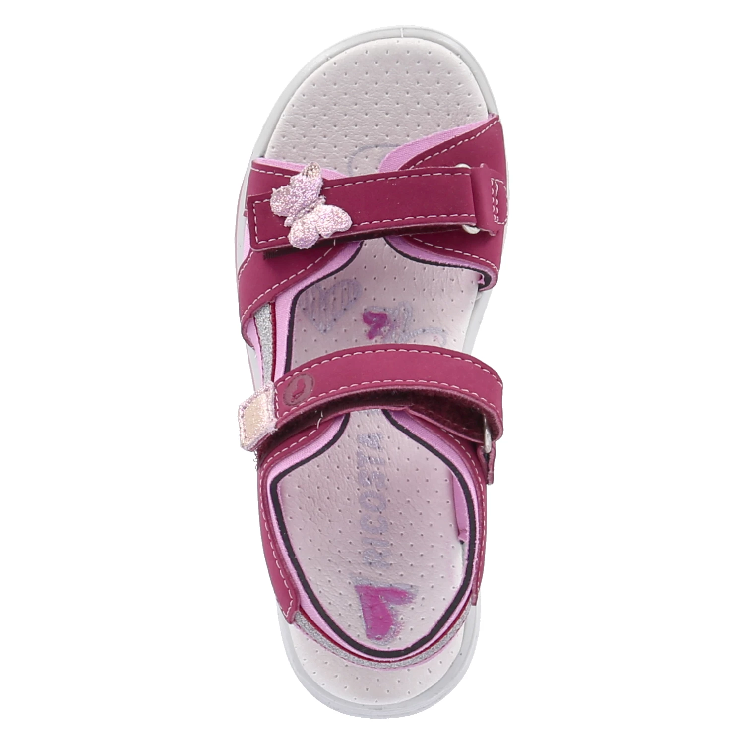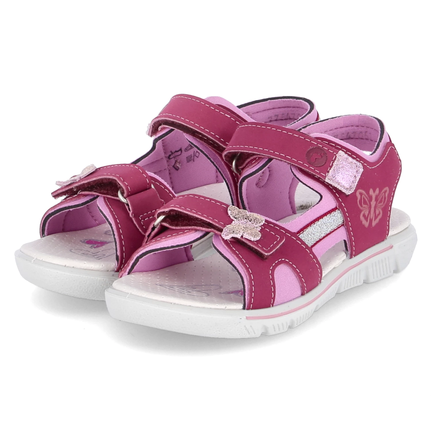 Ricosta Mädchen Sandaletten/ Sandalen SINA Rot-Rosa Kunstleder – zwei Klettverschlussriemen – Teile mit rosa und silber Glitzer – Schmetterlingsapplikationen – gepolsterte Decksohle – flexible, rutschhemmende Laufsohle