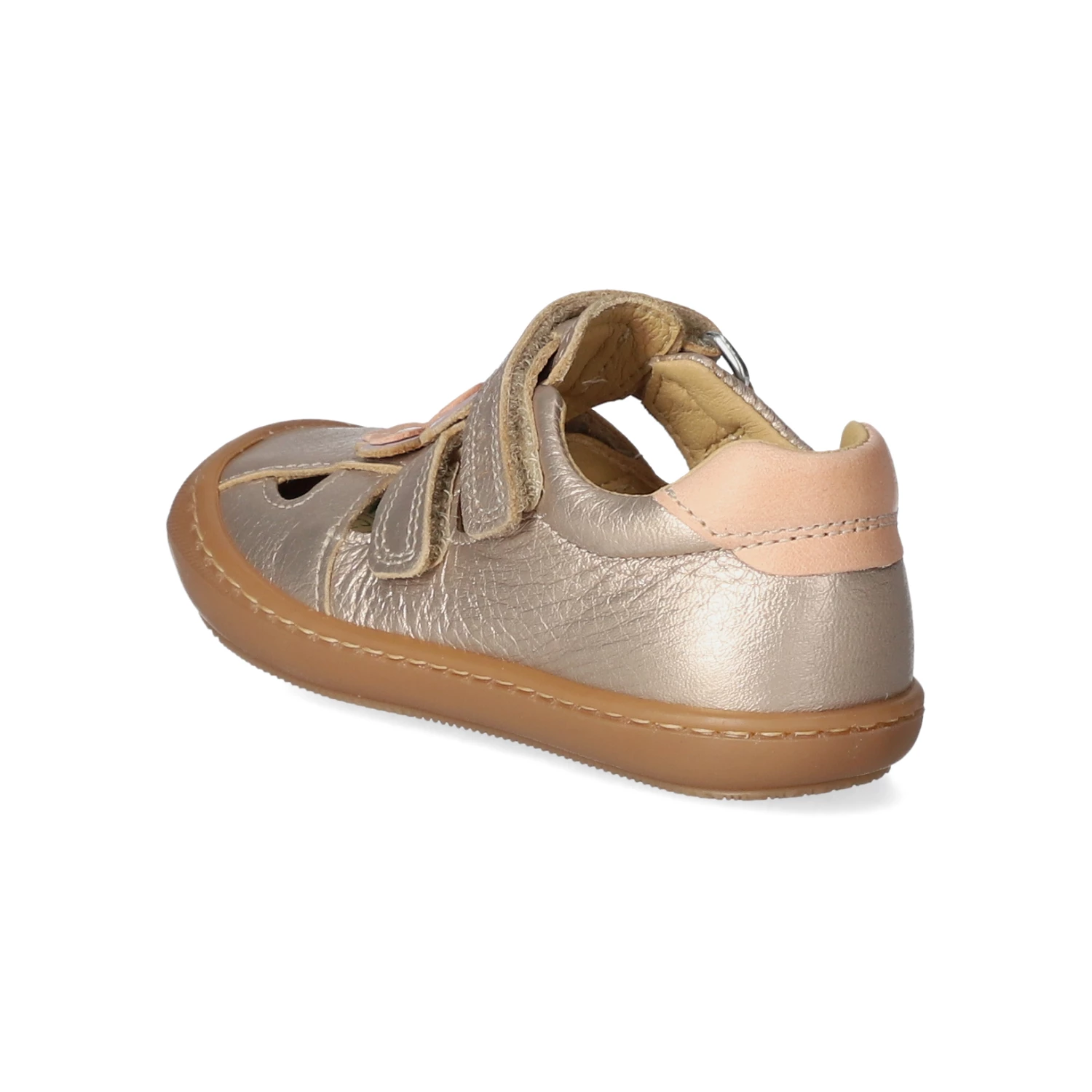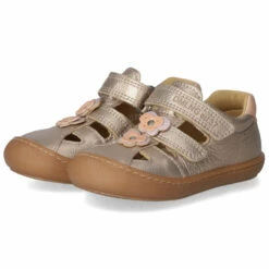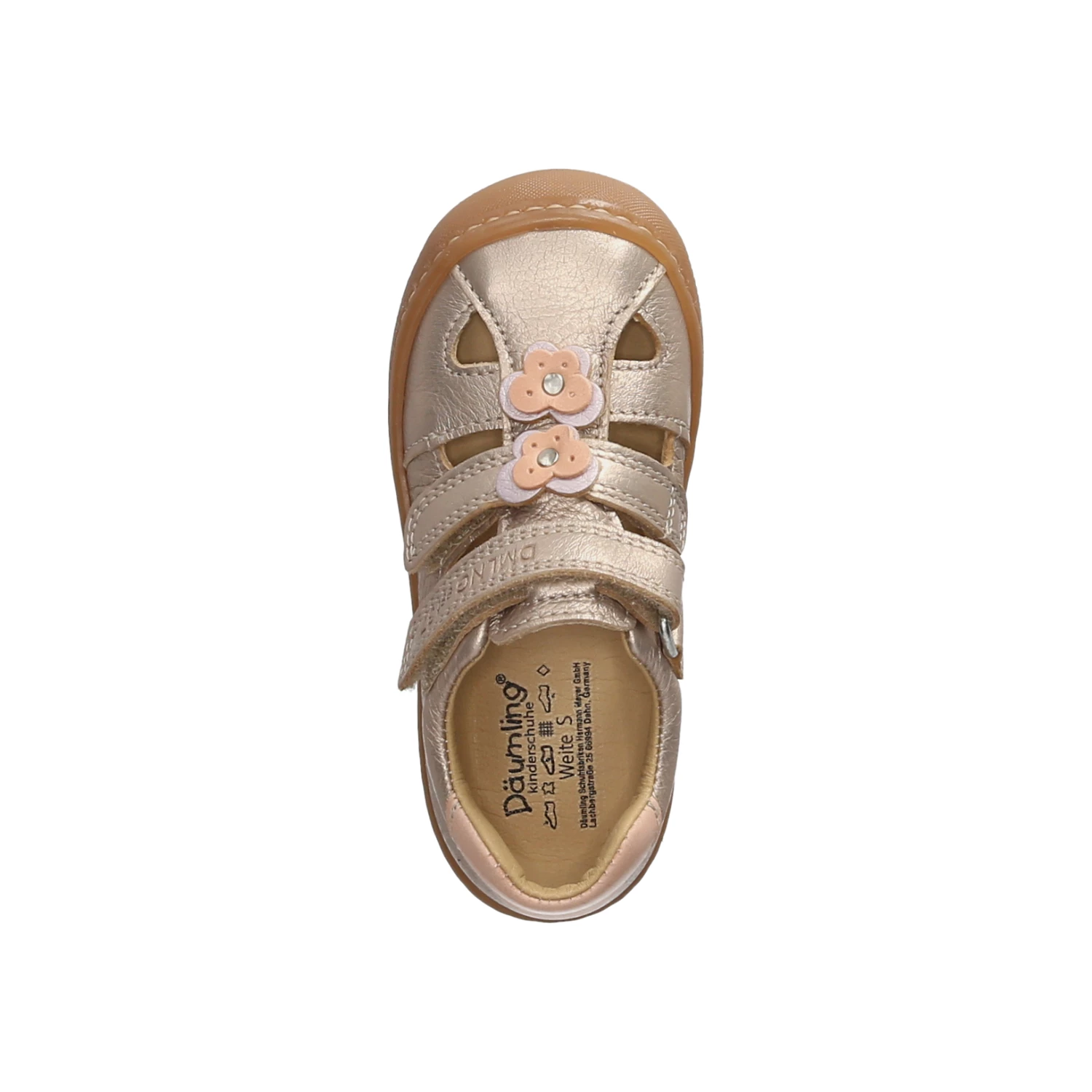 Däumling Mädchen Sandalen Gold Glattleder – hübsche Blumenmotive – zwei Klettverschlussriemen – dezente Markendetails – gepolsterte Wechseldecksohle – flexible, rutschhemmende Laufsohle mit leichtem Profil