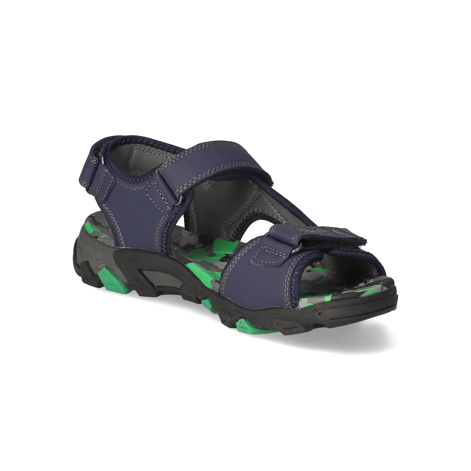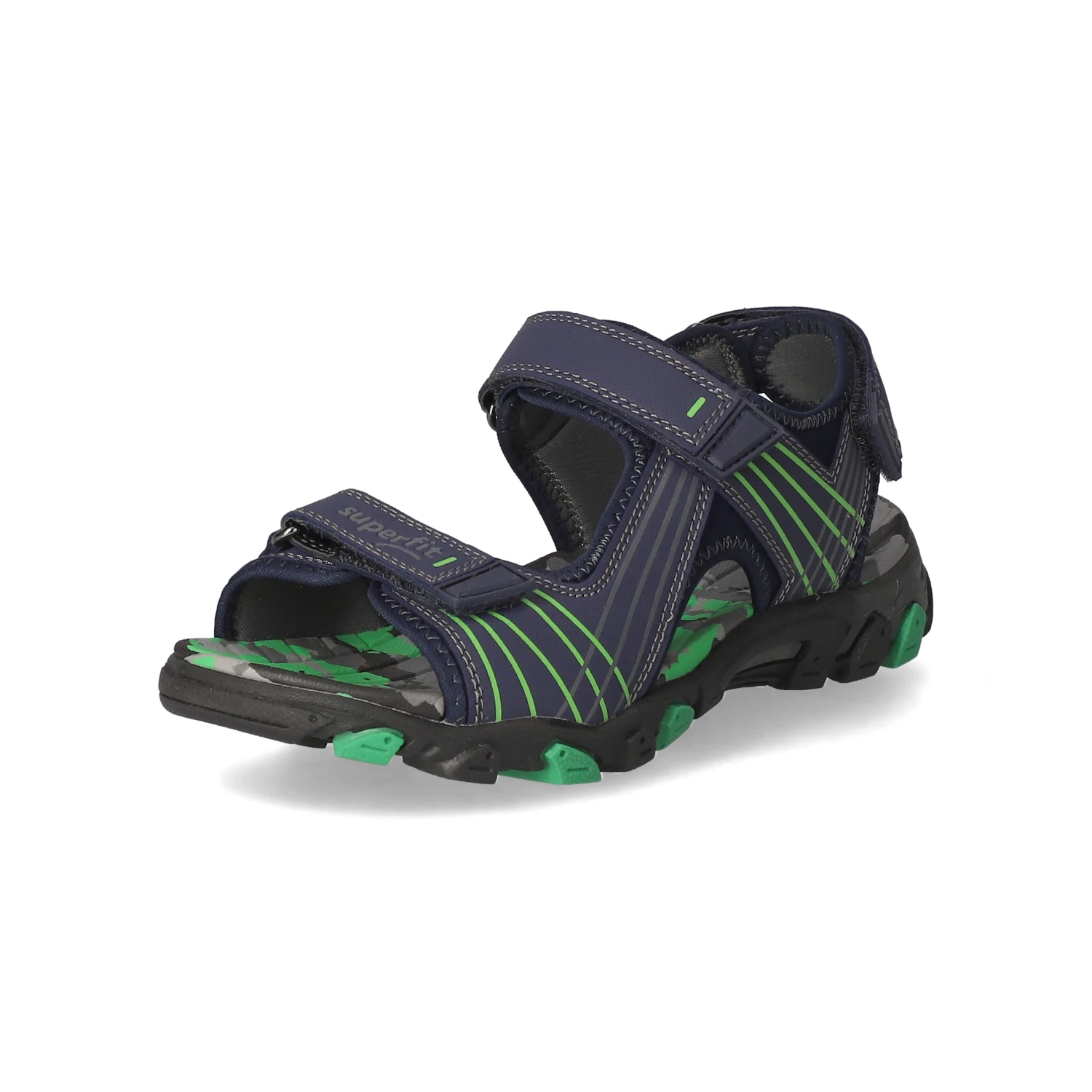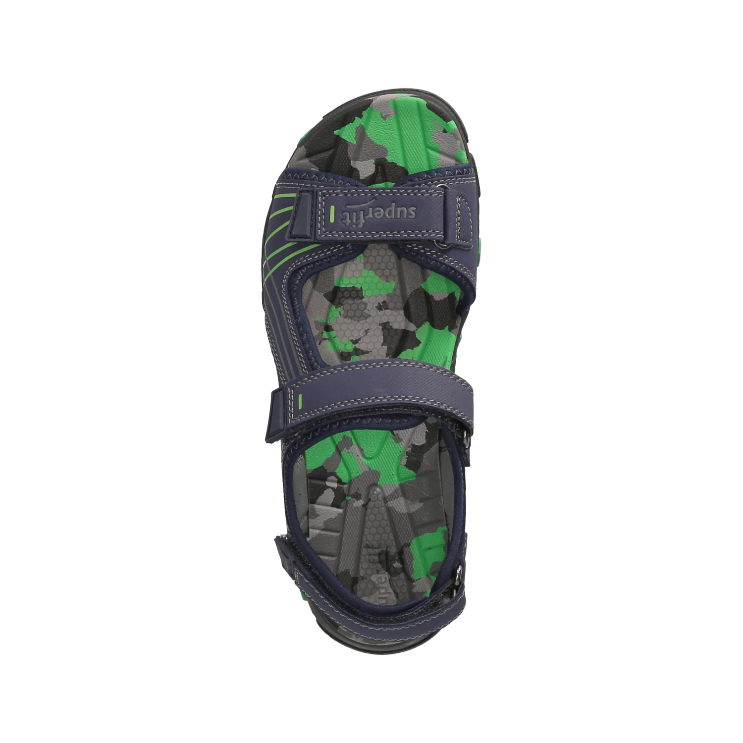 Superfit Kinder Sandalen Blau Synthetik-Textil-Mix – grüne Highlights – sportliche Zierstreifen – Riemen mit Klettverschluss – leicht gepolstertes Tieffußbett – flexible, rutschhemmende Profilsohle