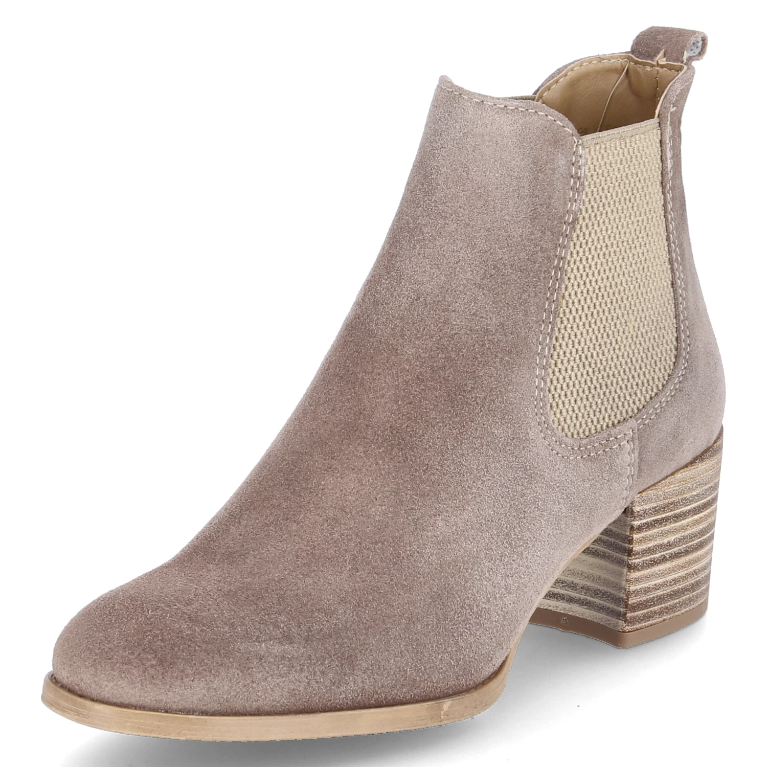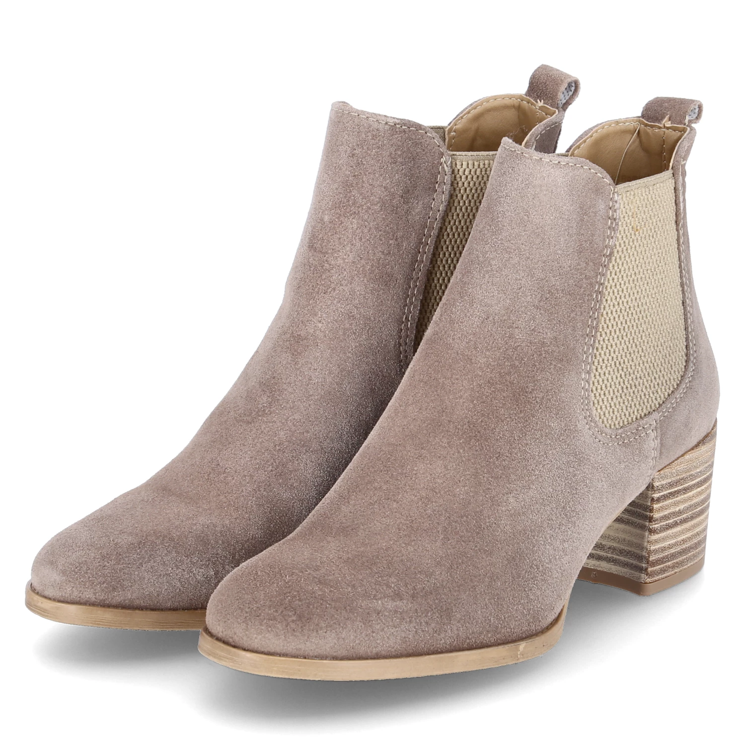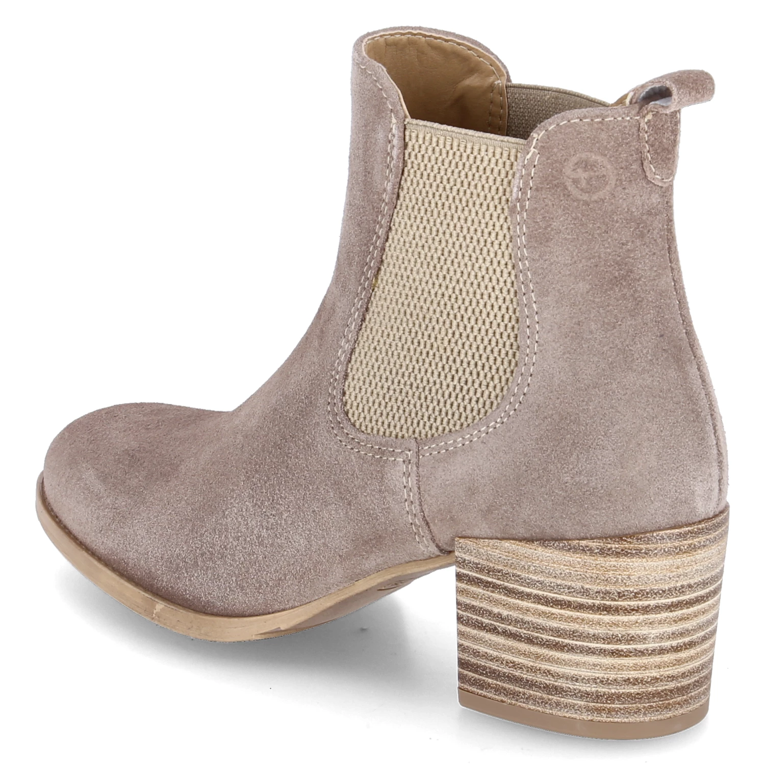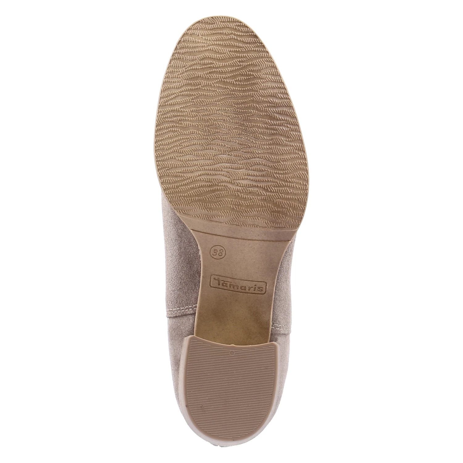 Tamaris Damen Chelsea Boots/ Stiefeletten Taupe Rauleder – seitliche Elastikeinsätze – Anziehlasche – gepolsterter Einstieg – verstärkte Ferse – rutschhemmende Laufsohle – gepolstertes Fußbett