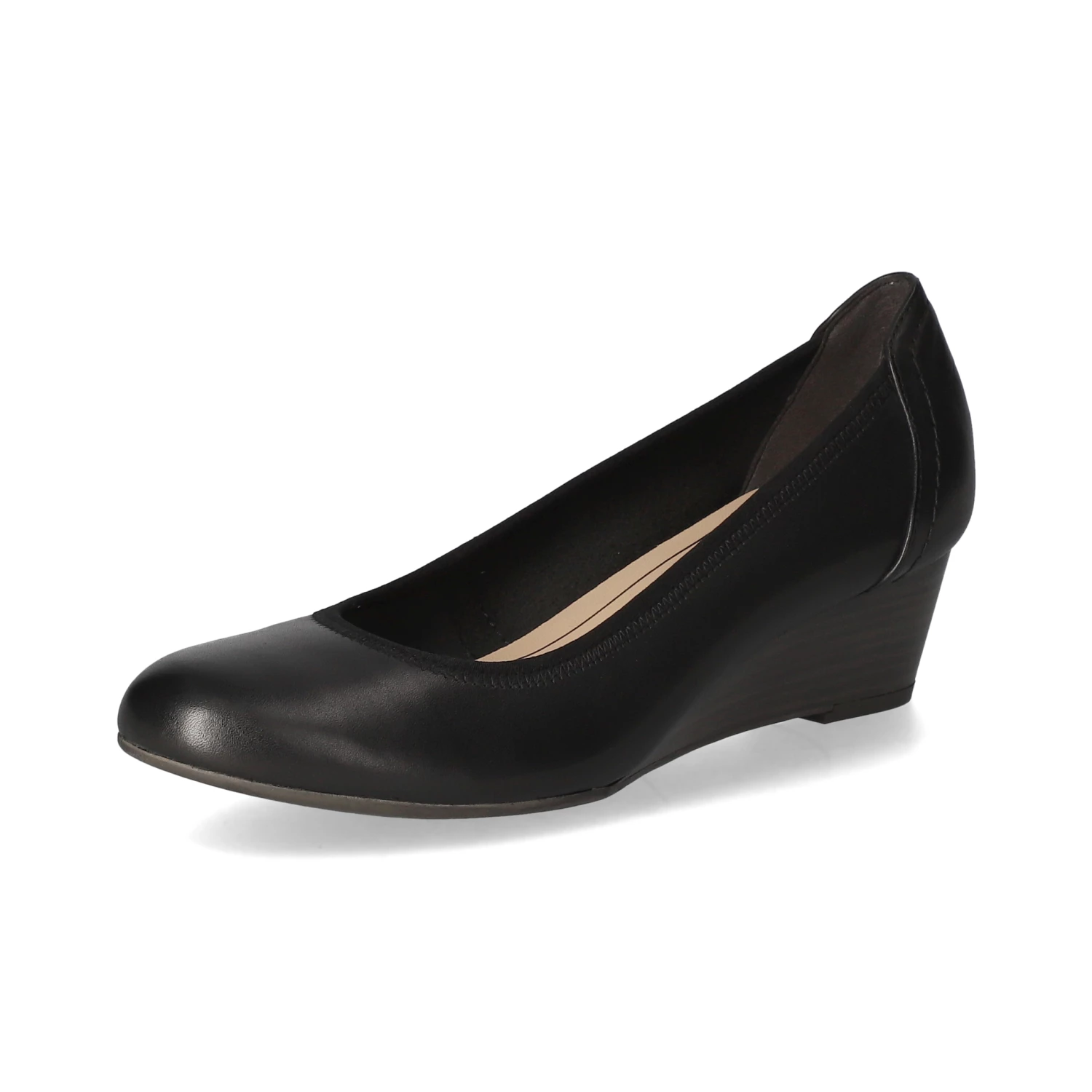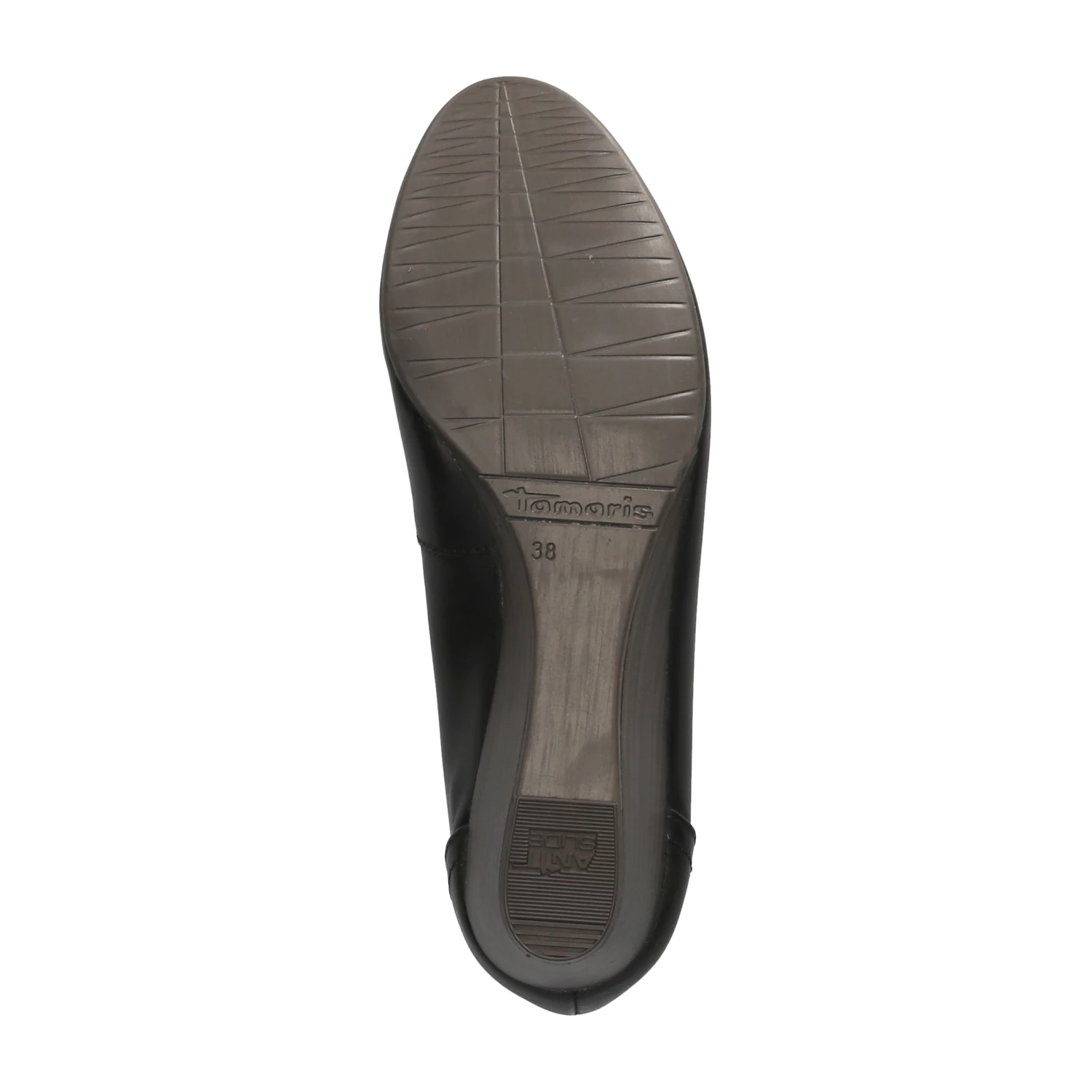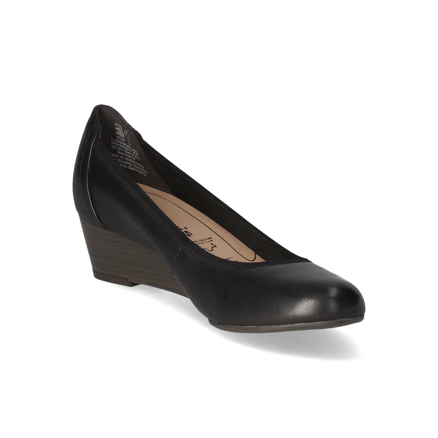 Tamaris Damen Ballerinas / Keil-Ballerinas Schwarz Glattleder – verstärkte Ferse – angenehmes Leder-Synthetikfutter – leicht gepolsterte Lederdecksohle – flexible, rutschhemmende Laufsohle