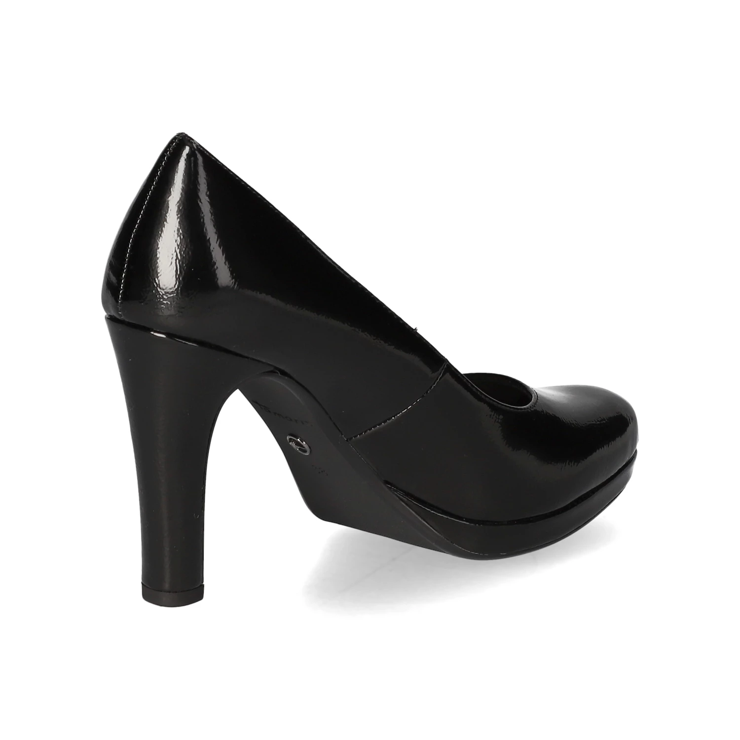 Tamaris Damen Pumps Schwarz Kunstleder – vegane Schuhe – stilvolle Lackoptik – dezente Markendetails – verstärkte Ferse – leichtes Textilfutter – gepolsterte Decksohle – rutschhemmende Laufsohle – stabiler Trichterabsatz – ca. 1 cm Plateau