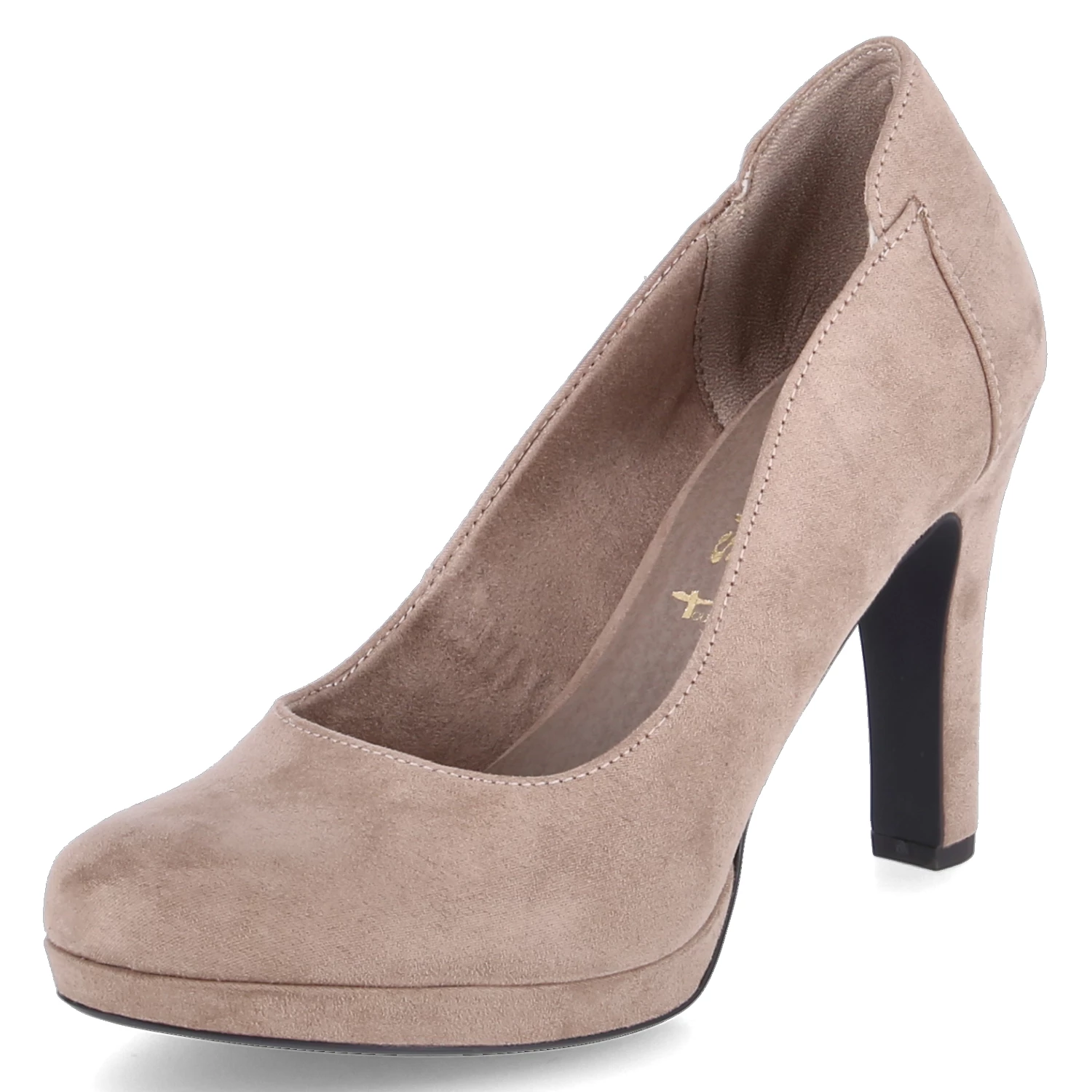 Tamaris Damen Pumps Beige Textil – samtige Oberfläche – verstärkte Ferse – ca. 9 cm hoher Blockabsatz – leicht überhöhte, verstärkte Ferse – weich gepolstertes TouchIt-Fußbett