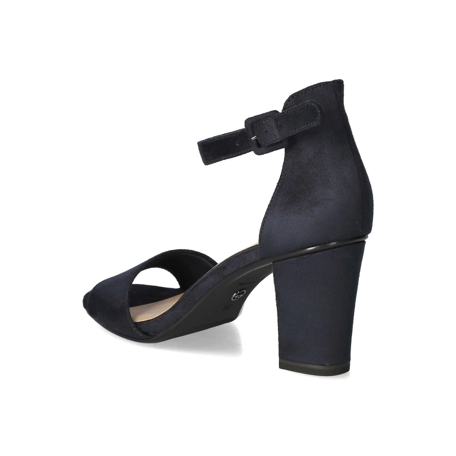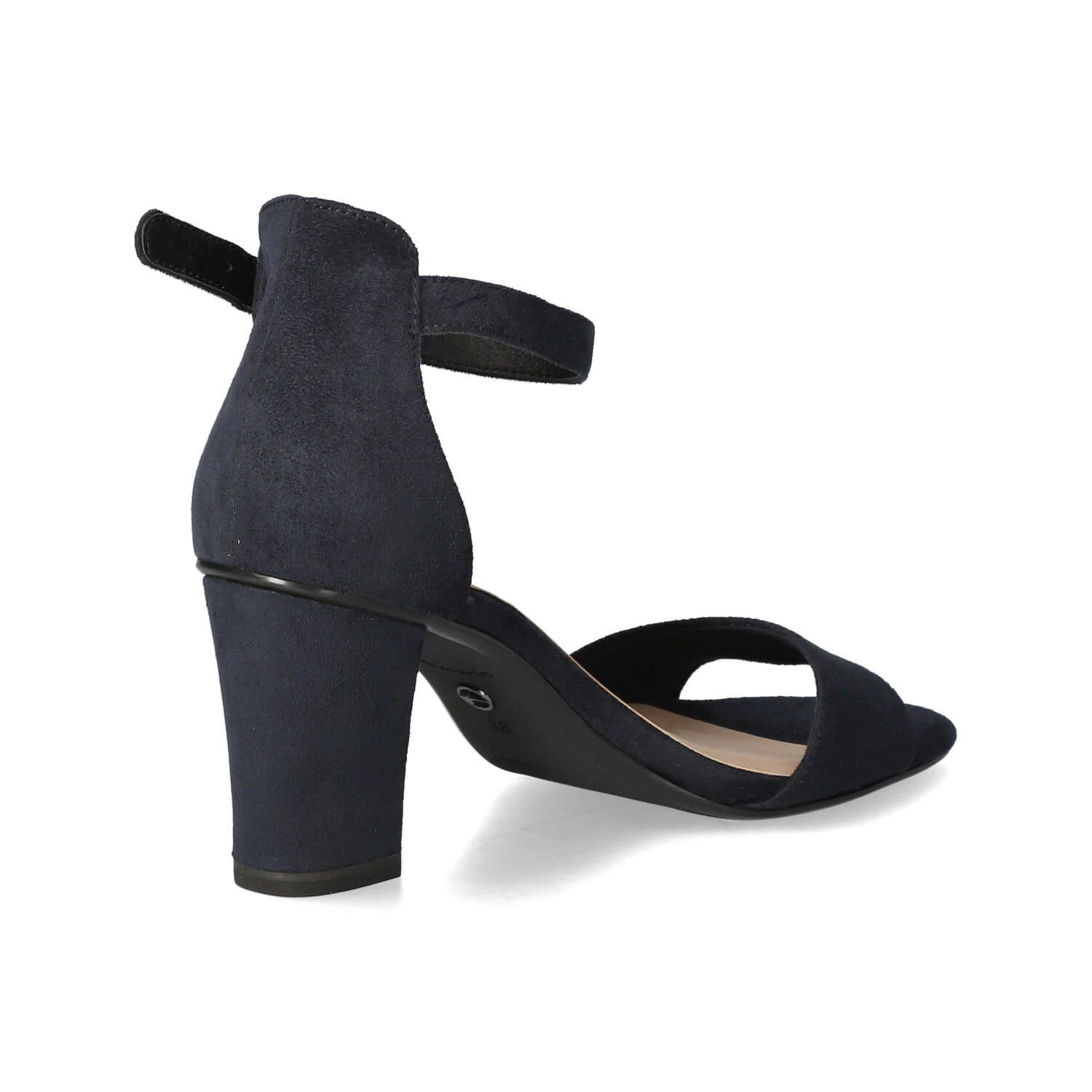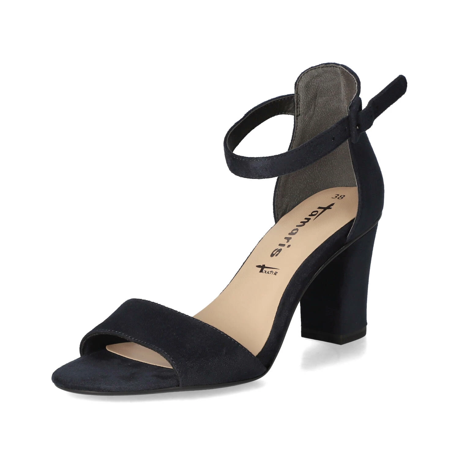 Tamaris Damen Sandaletten/ Riemchensandaletten Blau Textil – samtige Oberfläche – Knöchelriemen mit verstellbarer Schnalle und Elastikeinsatz – geschlossene Ferse – gepolsterte Decksohle – flexible, rutschhemmende Laufsohle – stabiler Blockabsatz