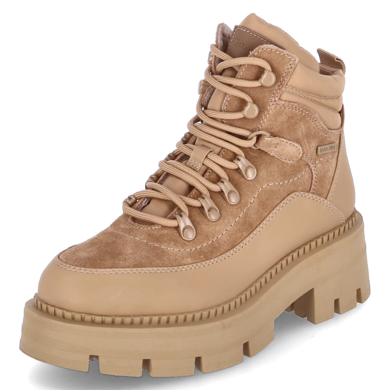 Tamaris Damen Schnür-Stiefeletten/ Winter-Boots Braun Leder-Textil-Synthetik-Mix – wasserfest, atmungsaktiv, isolierend – gepolsterter Einstieg mit Querstepp – klassische Schnürung – weiches Textilfutter – gepolsterte Decksohle – verstärkter Fußrahmen – Anziehlasche – robuste und rutschhemmende Profillaufsohle