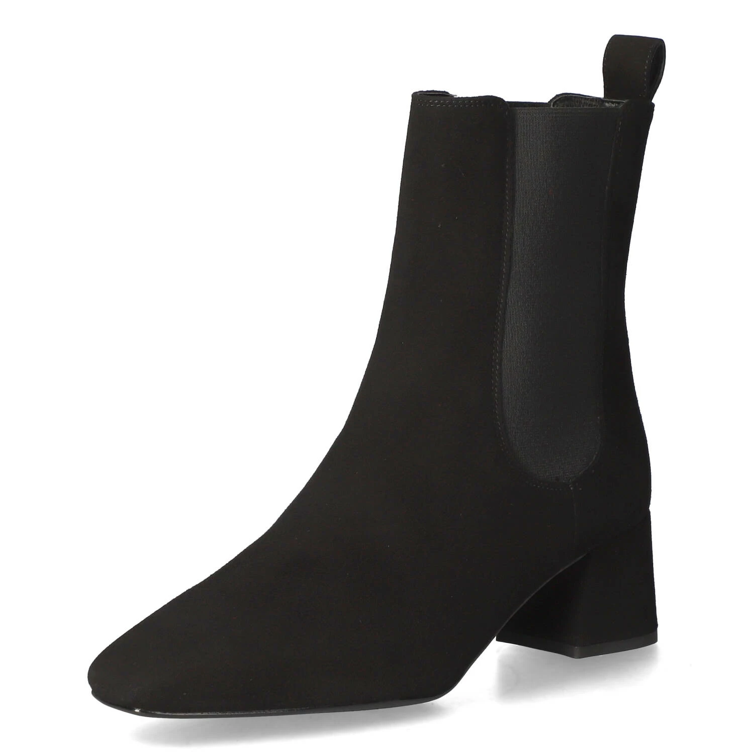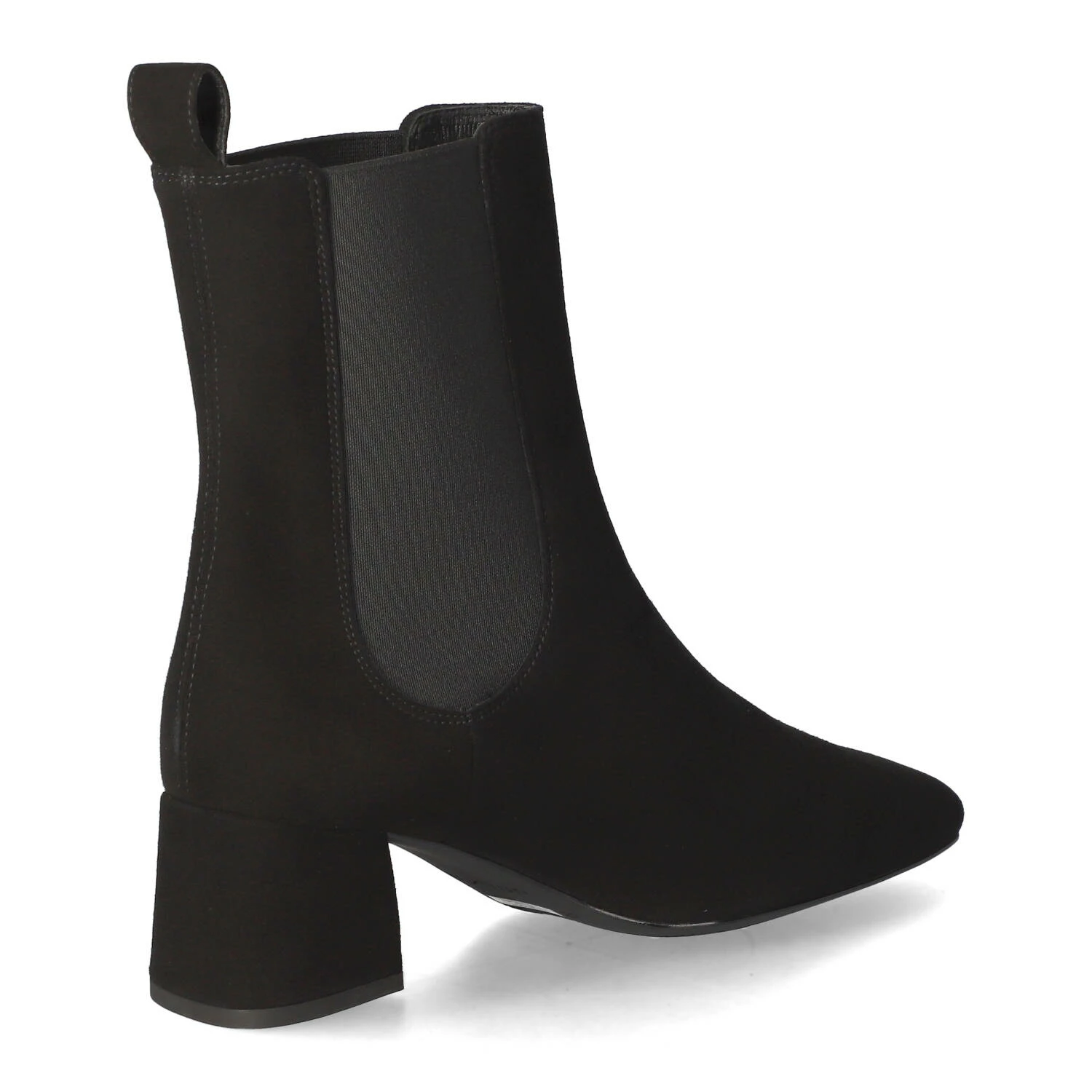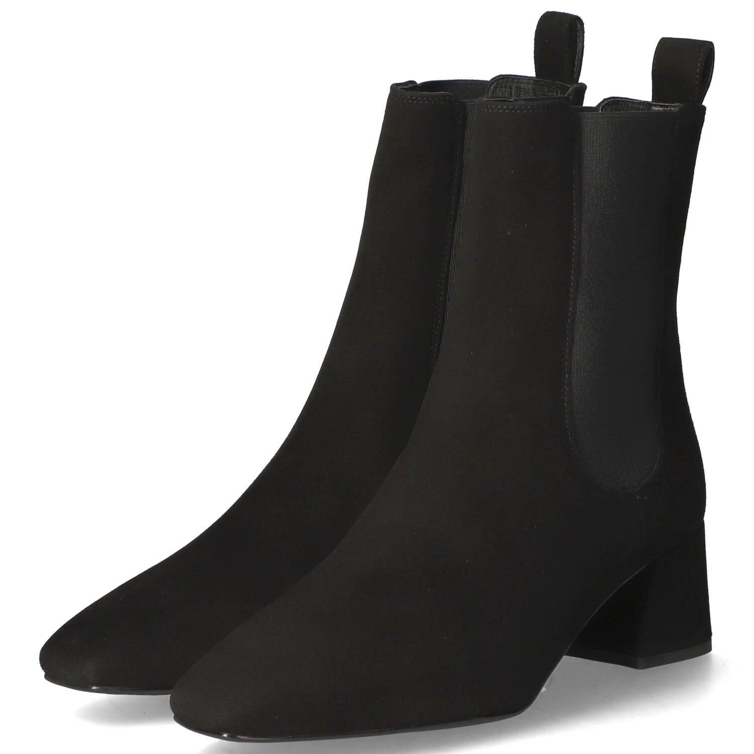 Unisa Damen Chelsea Boots/ Stiefeletten LOZOYA Schwarz Rauleder-Textil-Mix – seitliche Elastikeinsätze am Schaft – Anziehlasche – angenehmes Leder-Textilfutter – dezent gepolsterte Lederdecksohle – flexible und rutschhemmende Laufsohle mit leichtem Profil – stabiler Blockabsatz