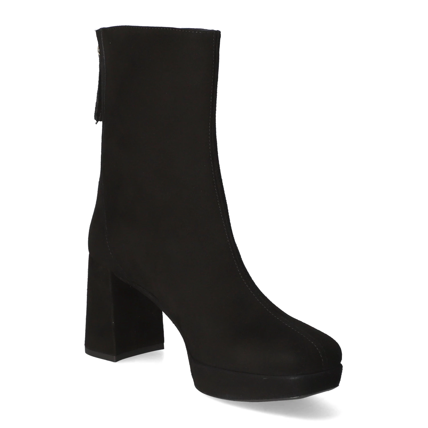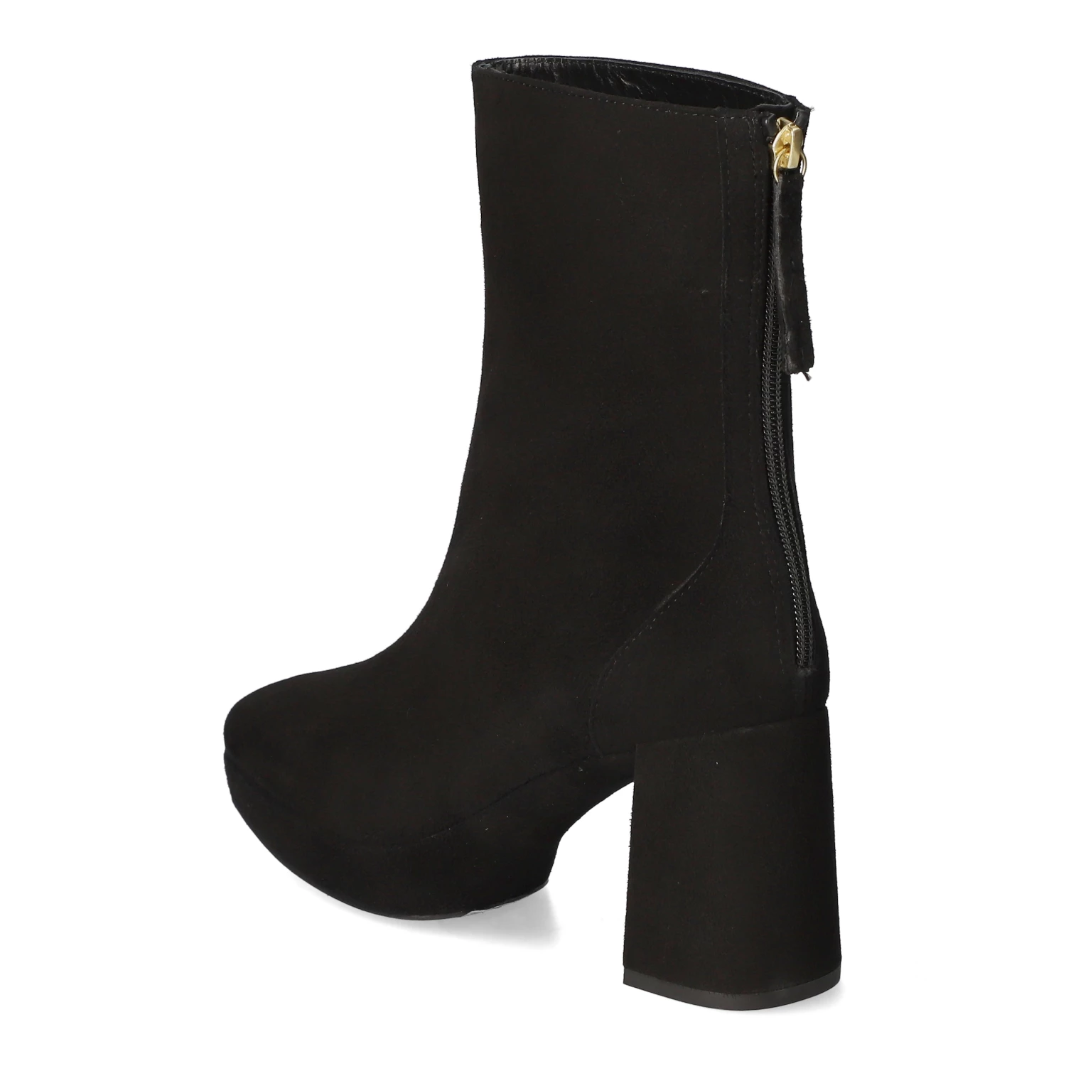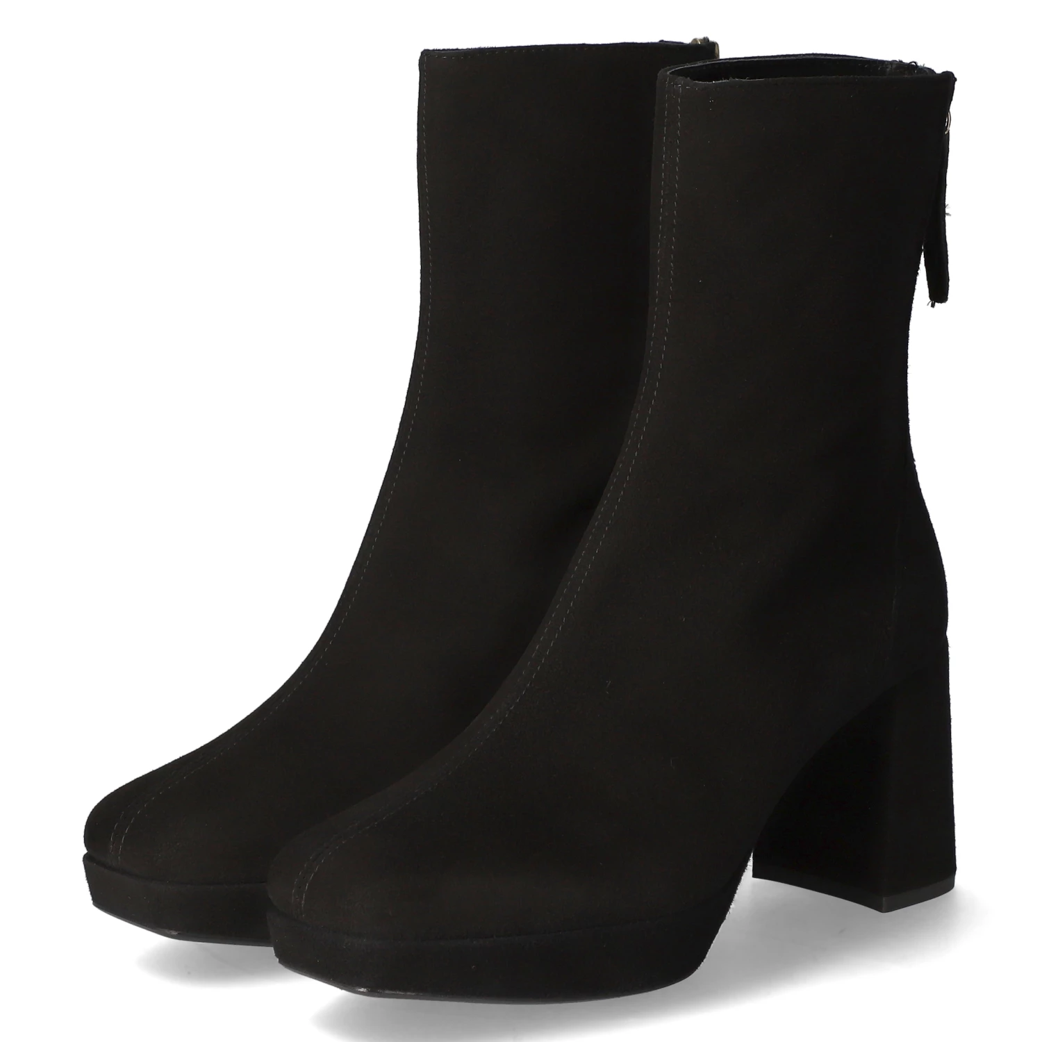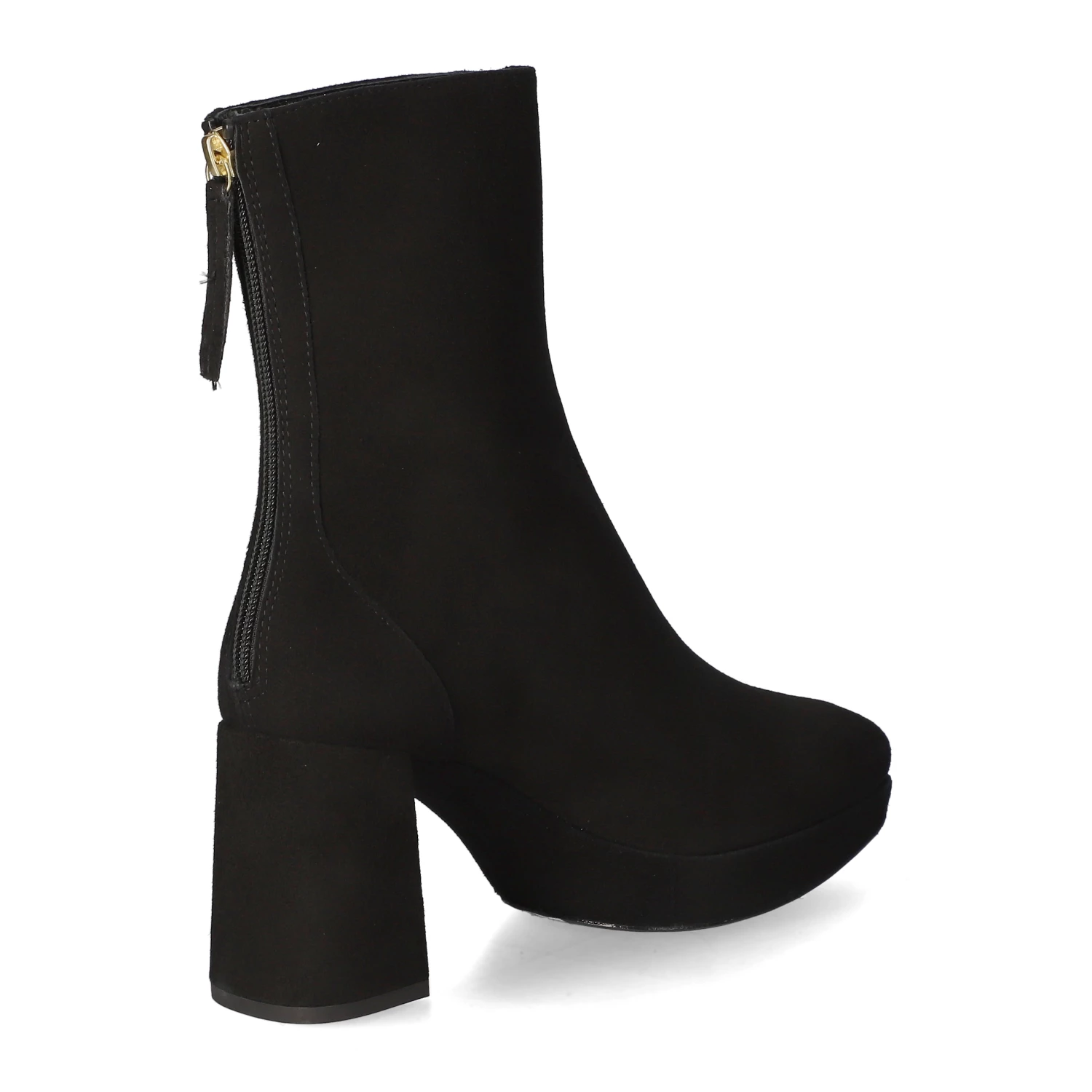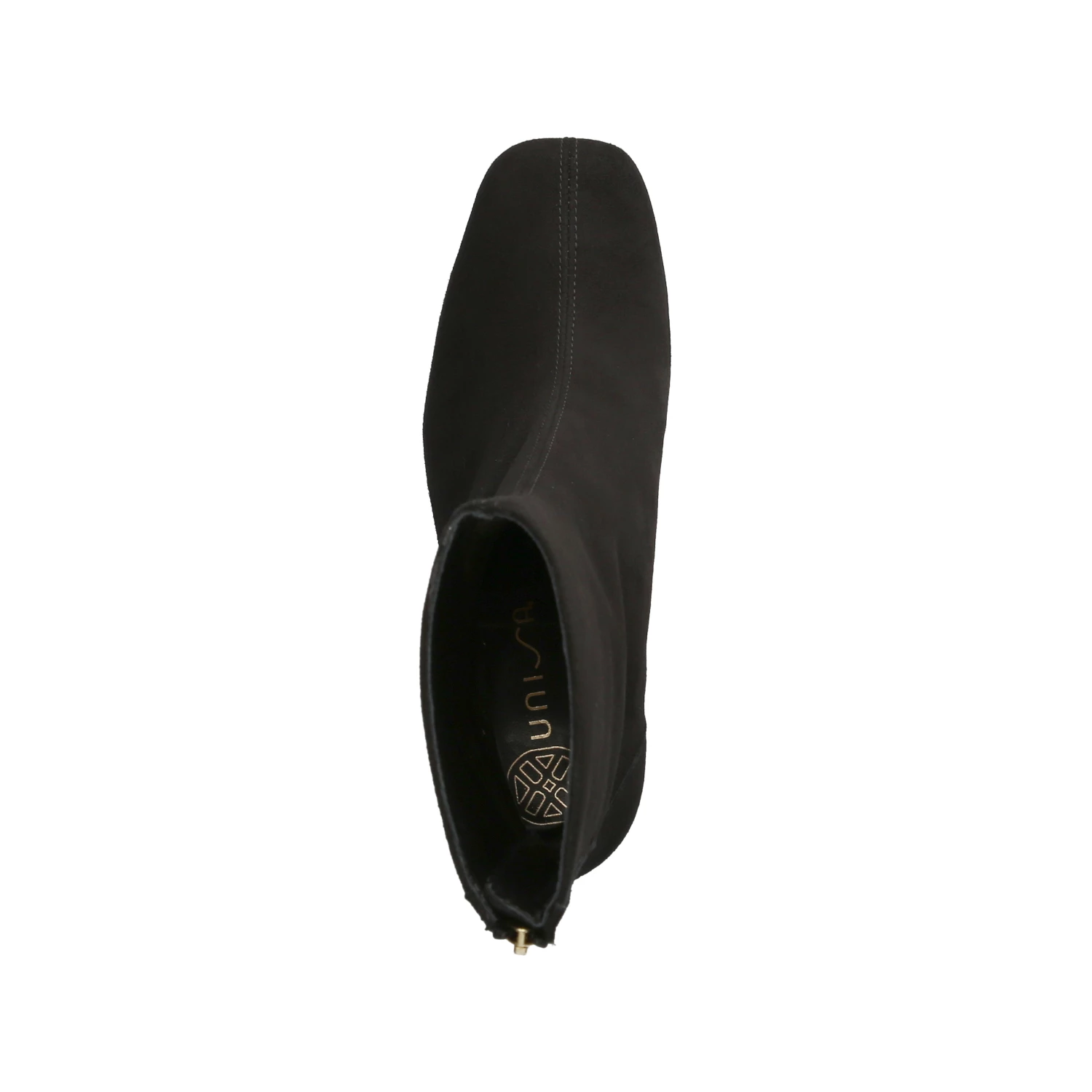 Unisa Damen Stiefeletten MATIAS Schwarz Rauleder – elegantes Design – Reißverschluss hinten am Schaft – gelabelt – leichtes Lederfutter – leicht gepolstertes Lederdecksohle – verstärkter Fersenbereich – flexible, rutschhemmenden Laufsohle – Blockabsatz ca. 8 cm