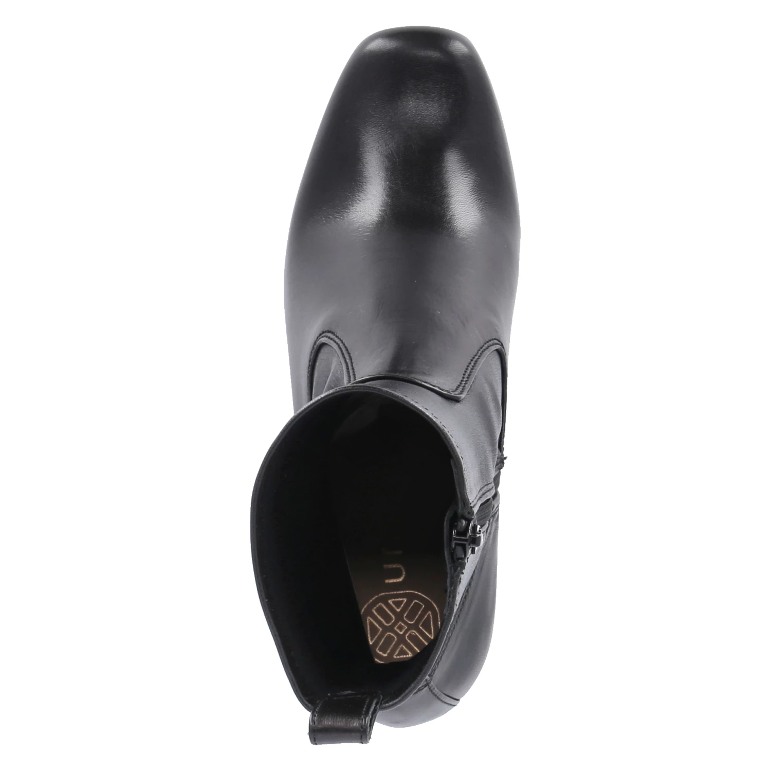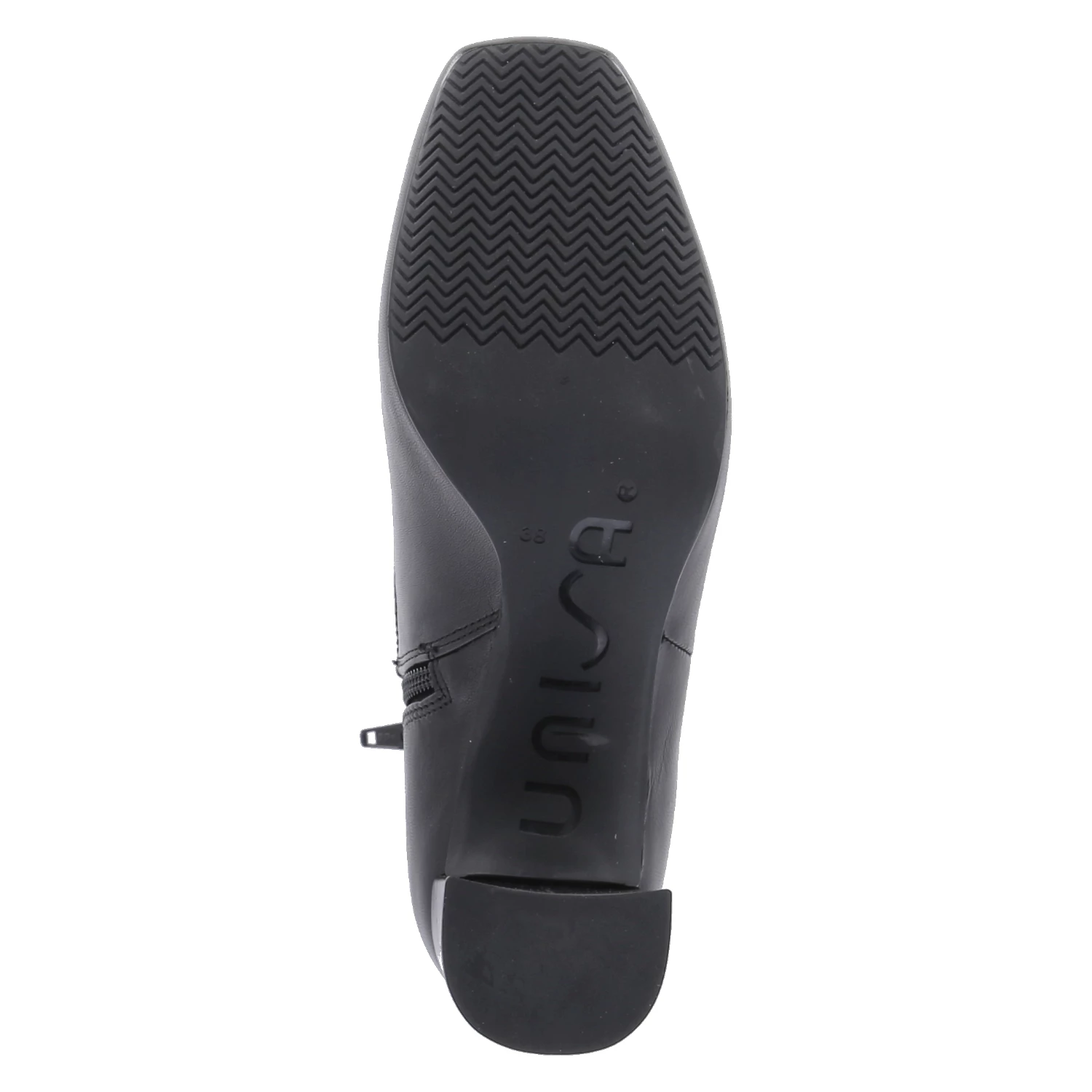 Unisa Damen Stiefeletten NAZAN Schwarz Glattleder-Synthetik-Mix – Reißverschluss – leicht stretchiger Schaft – Lederdecksohle – verstärkter Fersenbereich mit Anziehlasche – rutschhemmende Laufsohle